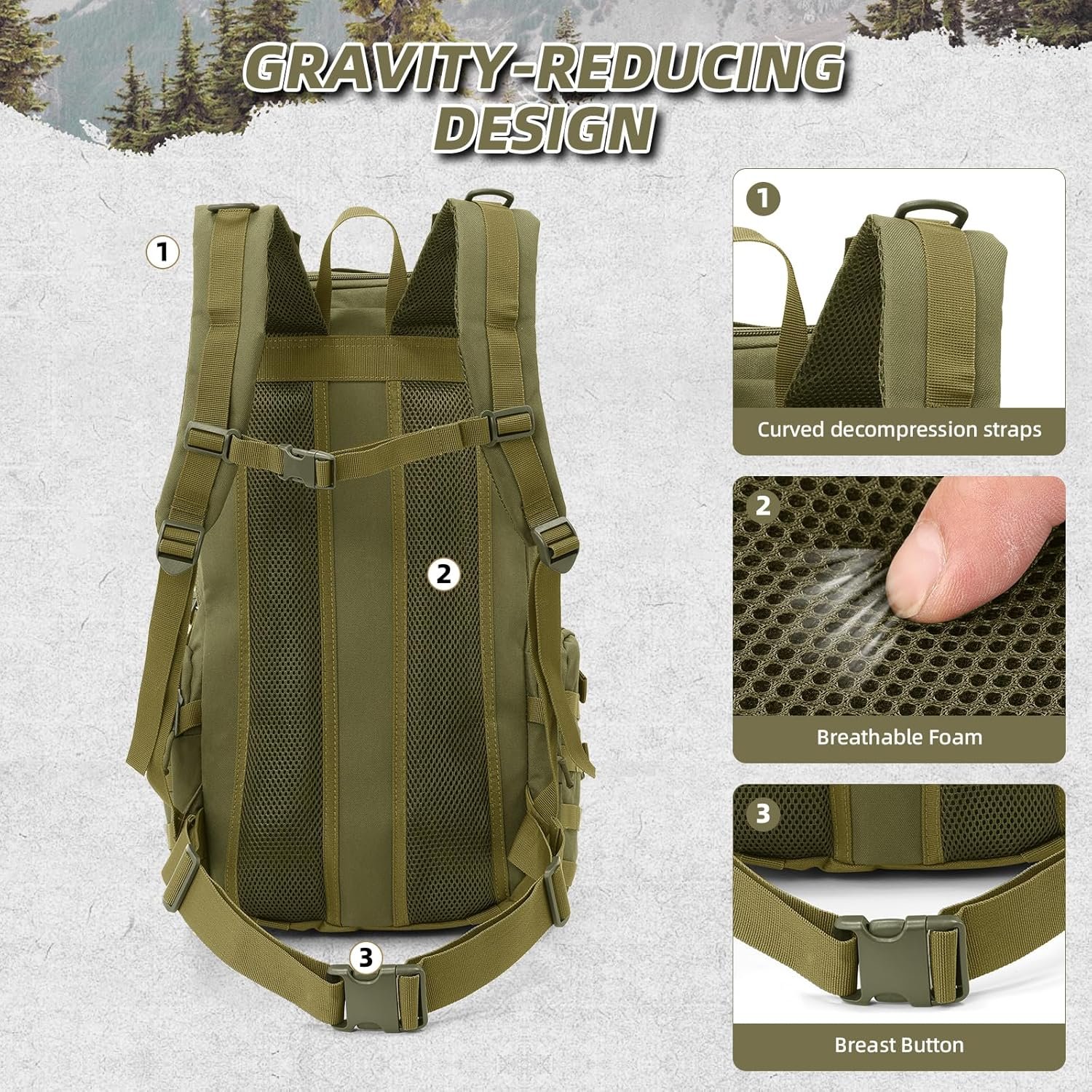 Nerlion 40L Hiking Backpack Travel Backpack for Men Women Camping Waterproof Outdoor Hiking Daypack Lightweight Backpack (Dark Green)