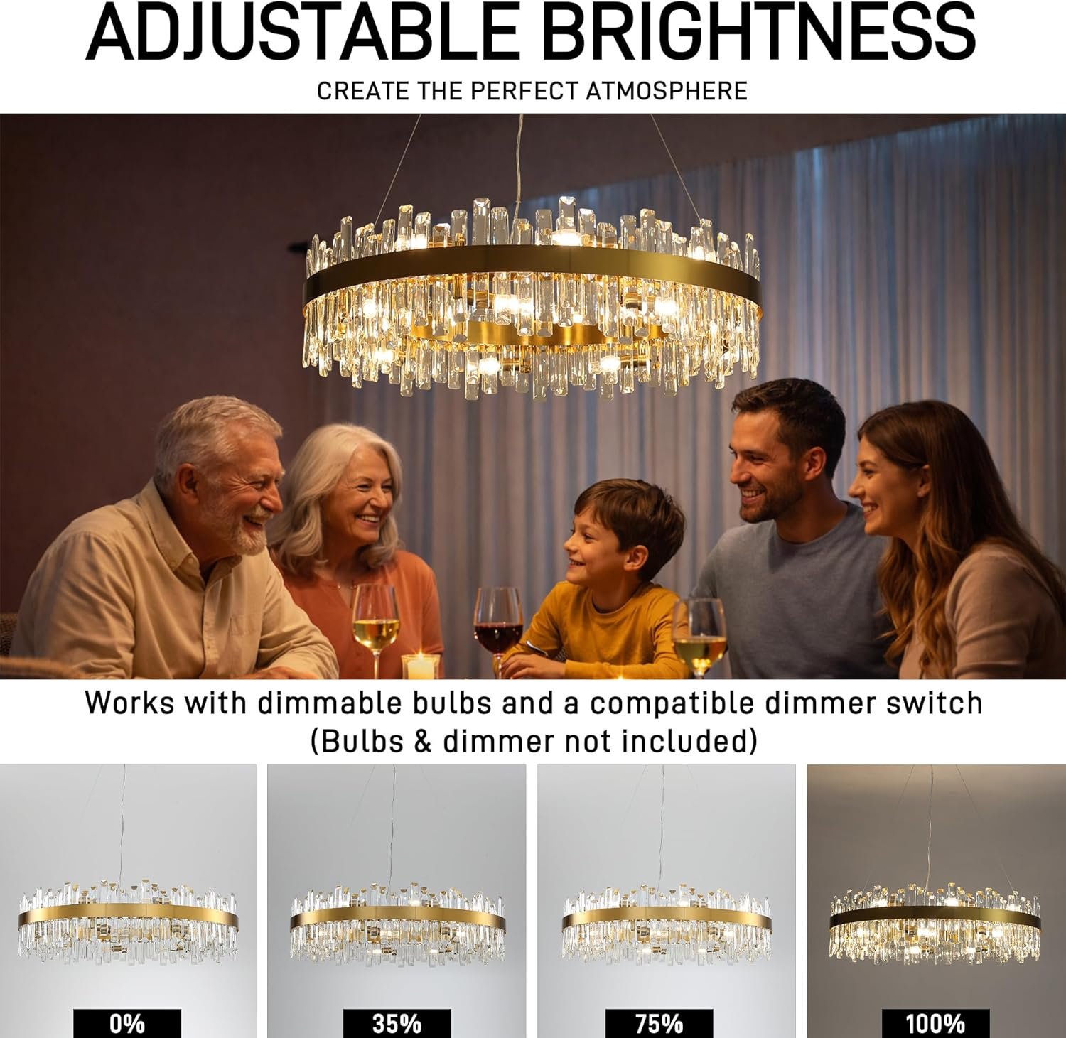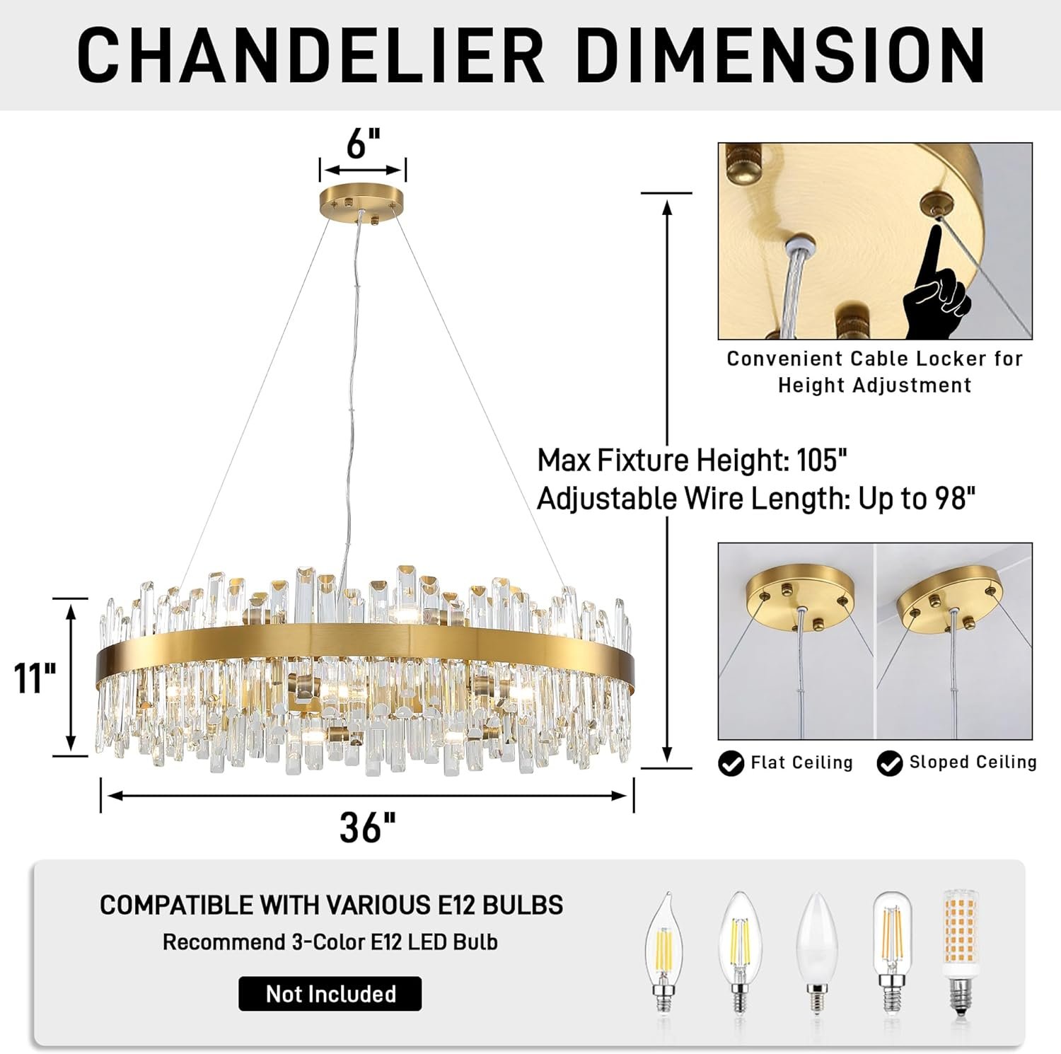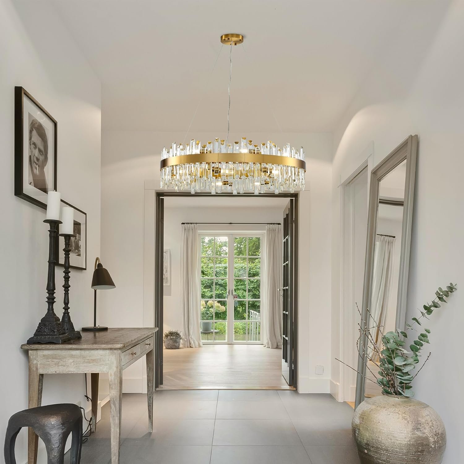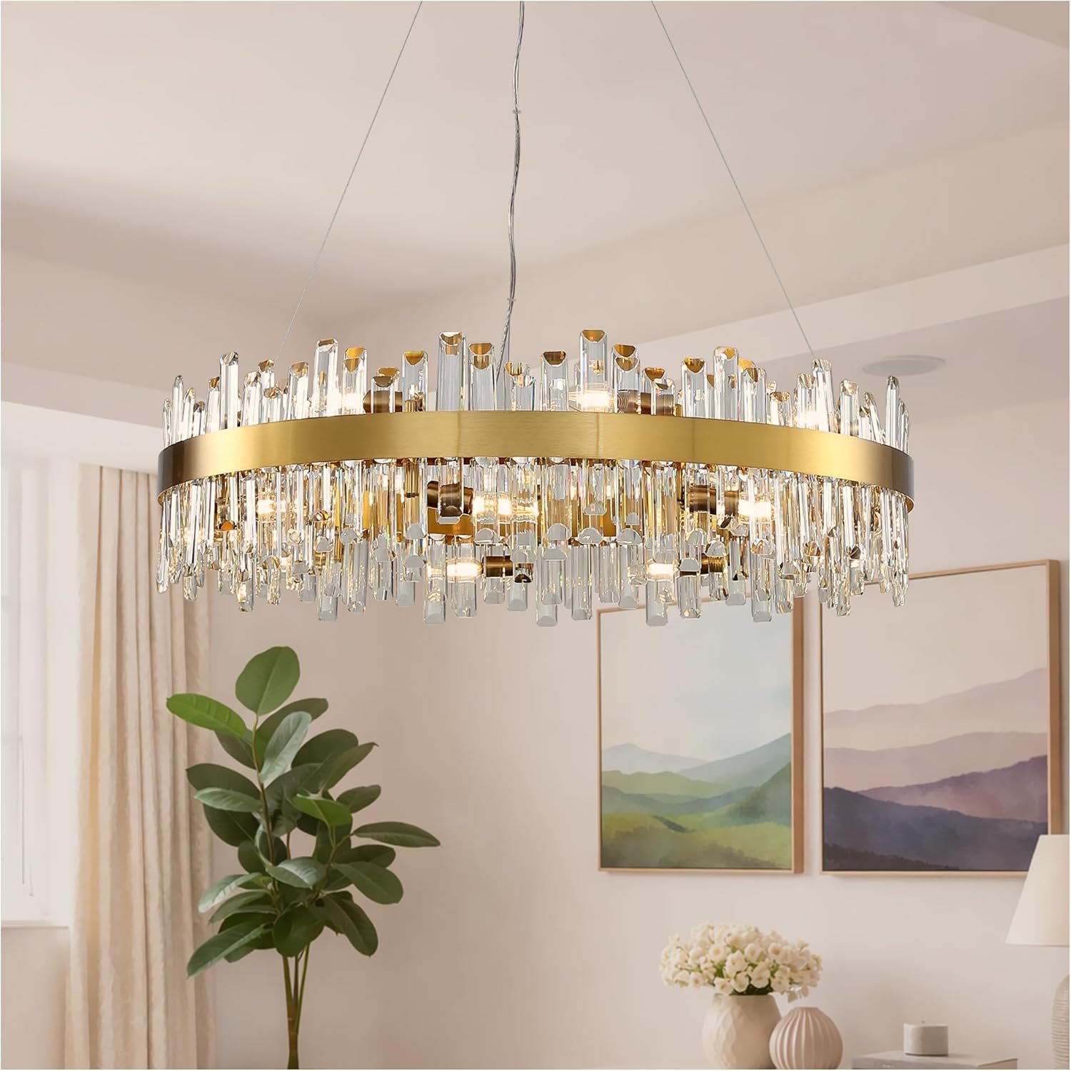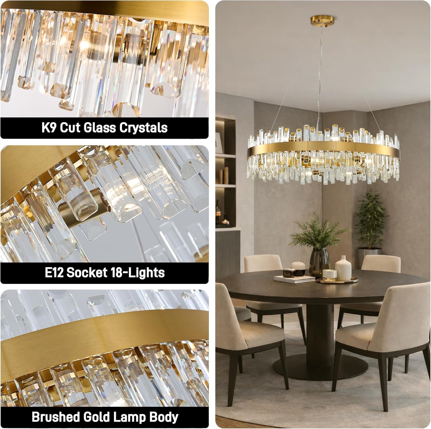 36-Inch Gold Modern Crystal Chandelier, 18 Lights, Large Round 2-Tier K9 Crystal Raindrop Pendant Light Fixture for Dining Room, Living Room, Kitchen Island, Bedroom