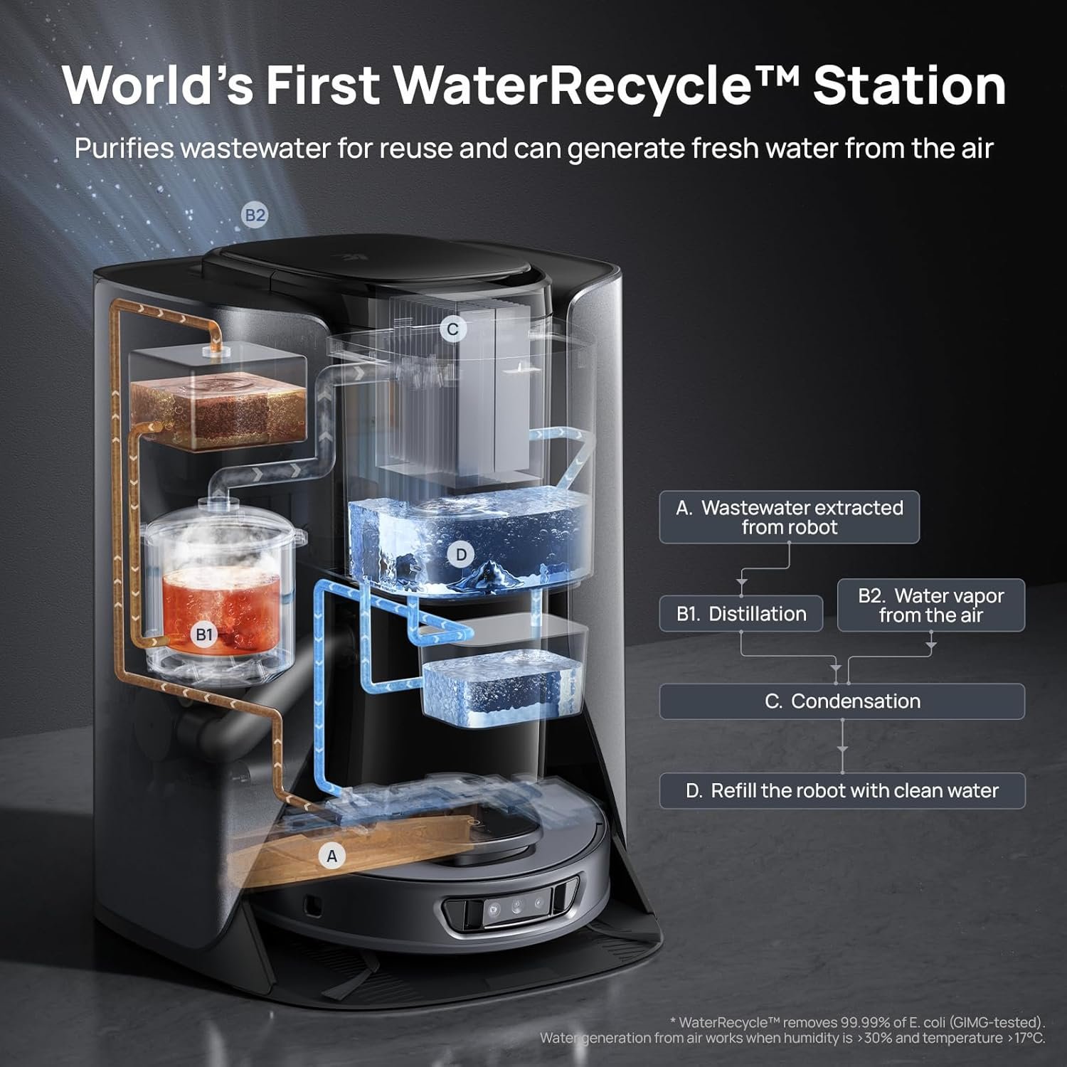 3i S10 Ultra Robot Vacuum and Mop with WaterRecycle System, 18000Pa Suction, Self-Cleaning Extendable Roller Mop, Auto Mop Washing & Drying, Self-Emptying & Refilling, Ai Obstacle Avoidance