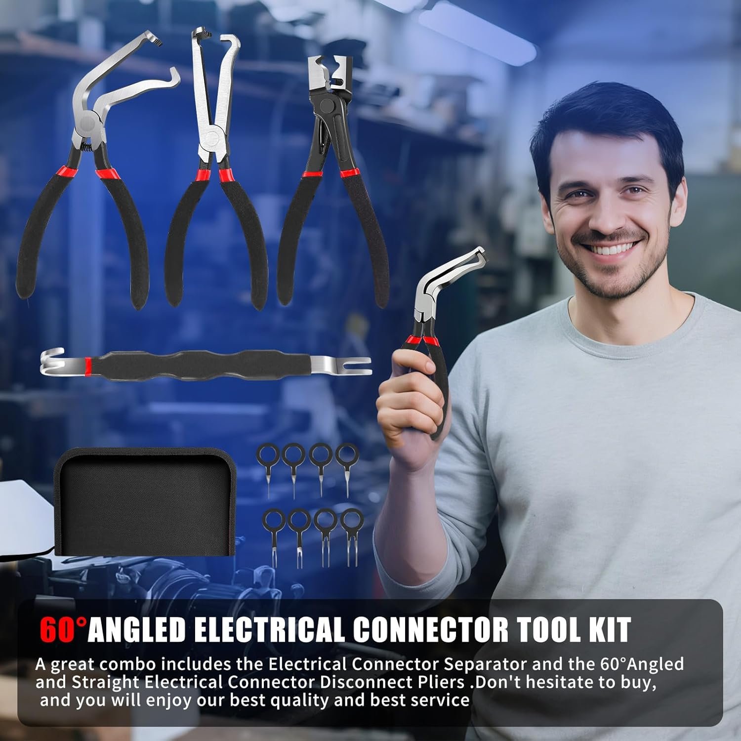 2 Pcs Electrical Disconnect Pliers, Electrical Connector Pliers, Electrical Plug Pliers for Removing Automotive Push tab Style Electrical connectors (Straight+60 Degree)