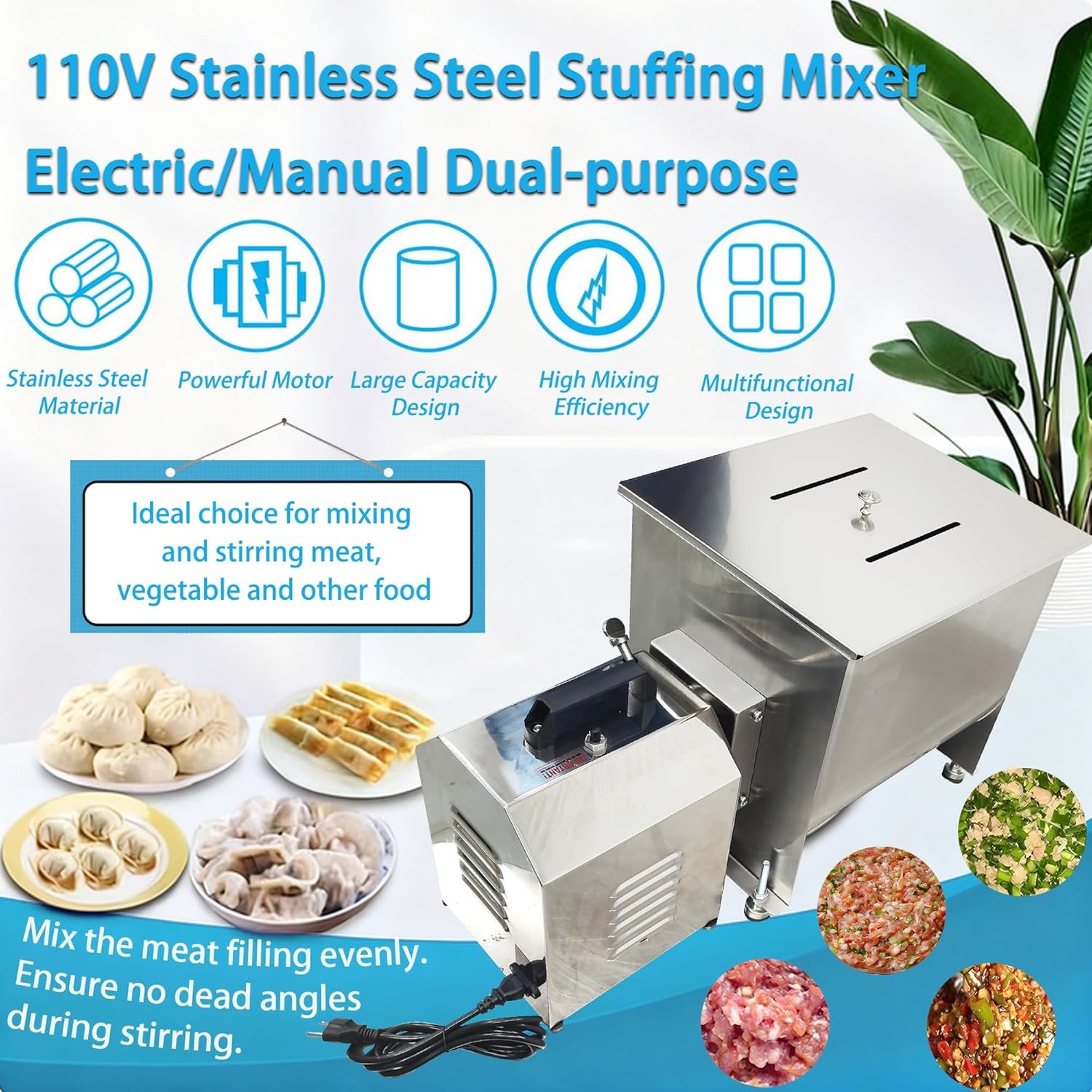 40L Meat Mixer & Blender, 550W Stainless Steel Stuffing Mixer, with Forward & Reverse Rotation, Electric/Manual Food Processor For Home & Commercial Use in Processing Sausages Dumplings