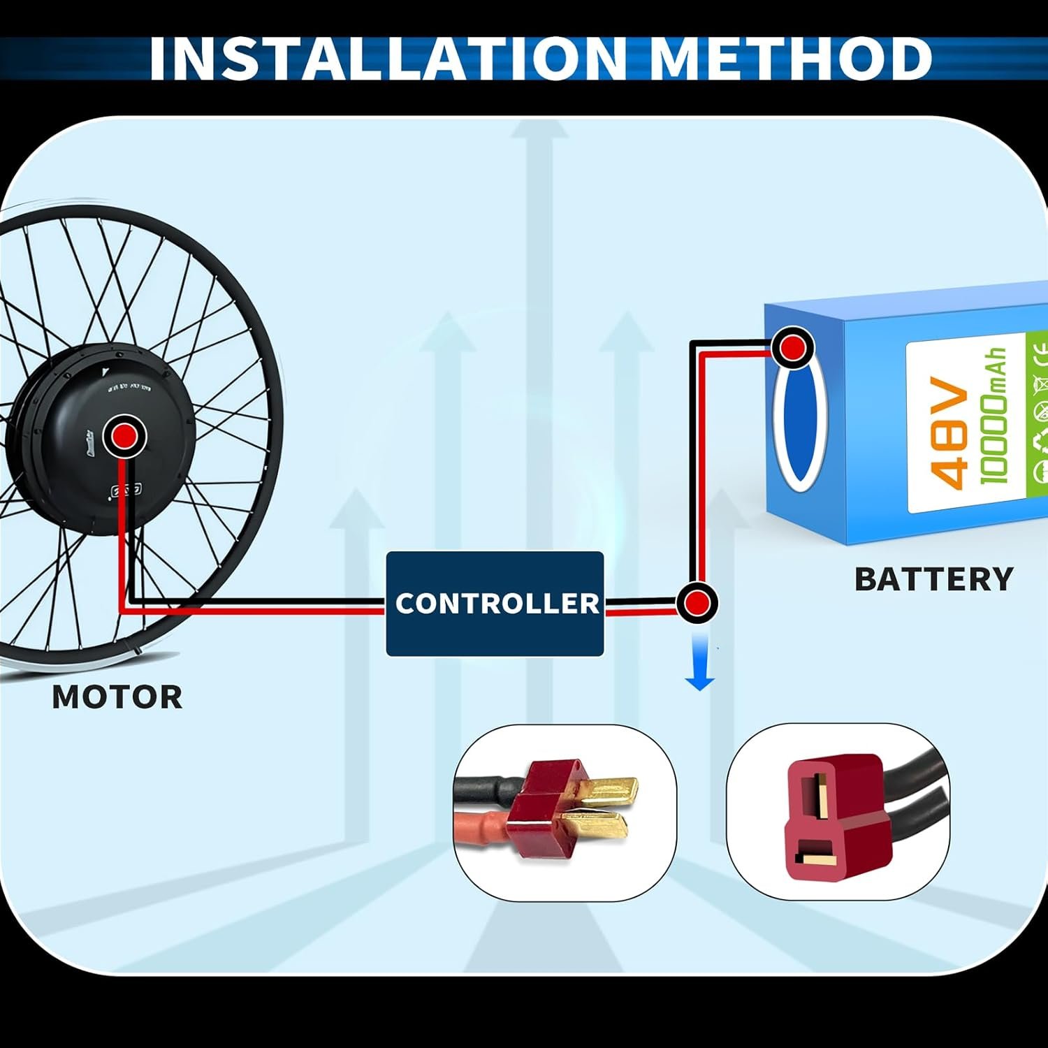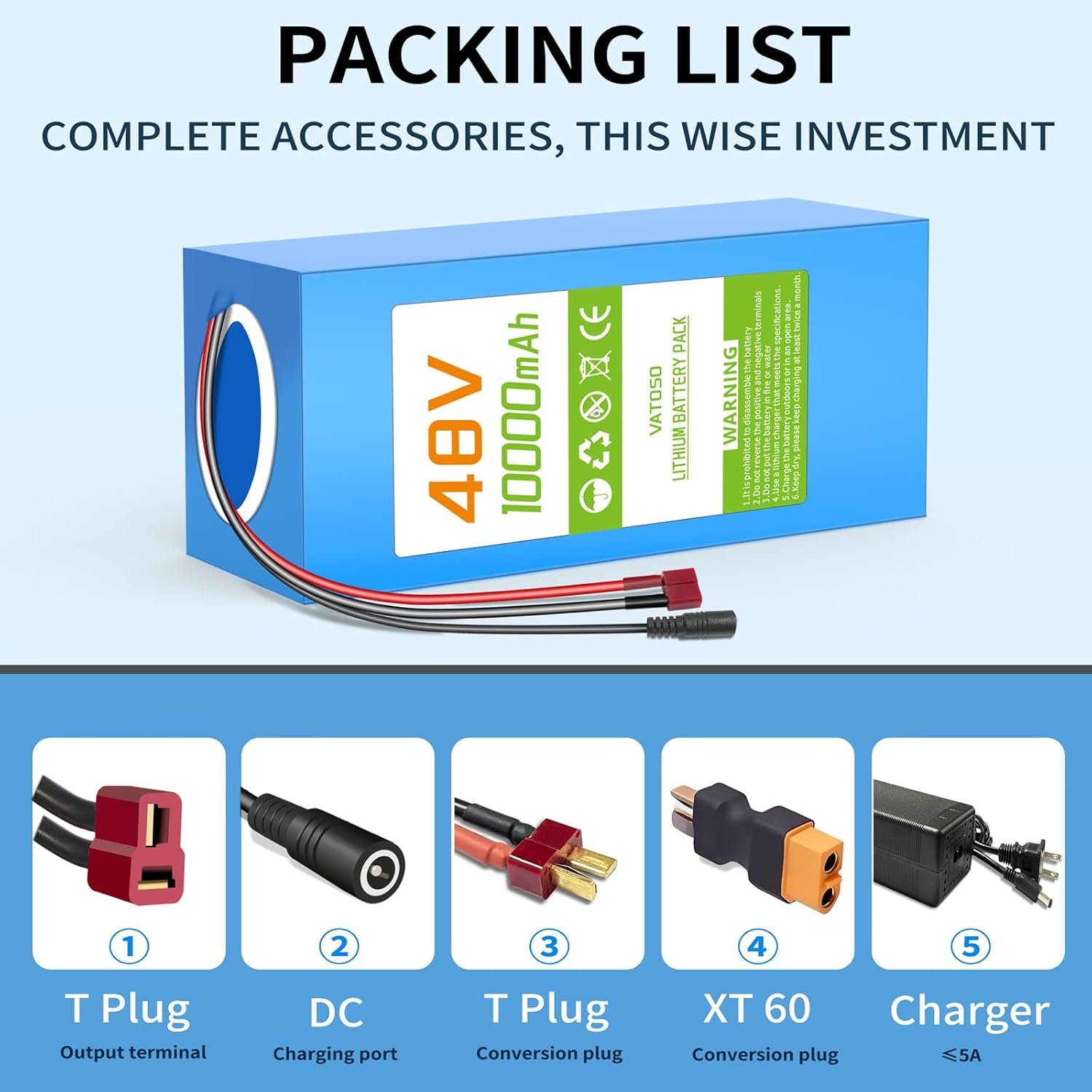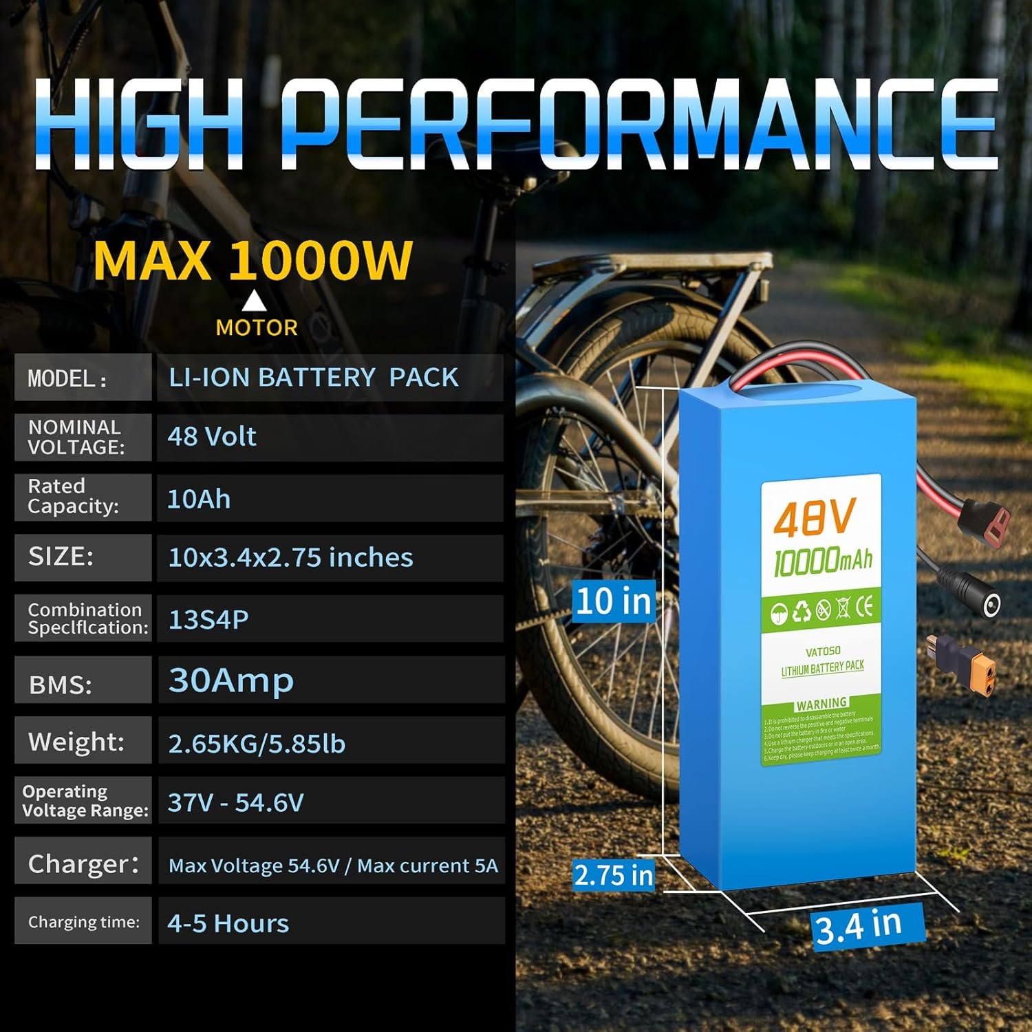 48V 10Ah Lithium Ebike Battery with BMS, Compatible with 100W-800W Motors, for Electric Bikes, Scooters, ATVs, Electric Dirt Bikes