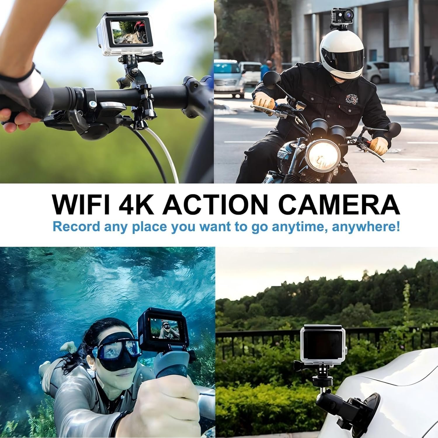 4K 30FPS WiFi Action Camera with 128GB Memory Card- 98FT Waterproof Ultra HD Underwater Camera, 170° Wide Angle 2.0″ Screen, Sports Camera with 2 Batteries, Mounting Accessories Kit (4k cam)