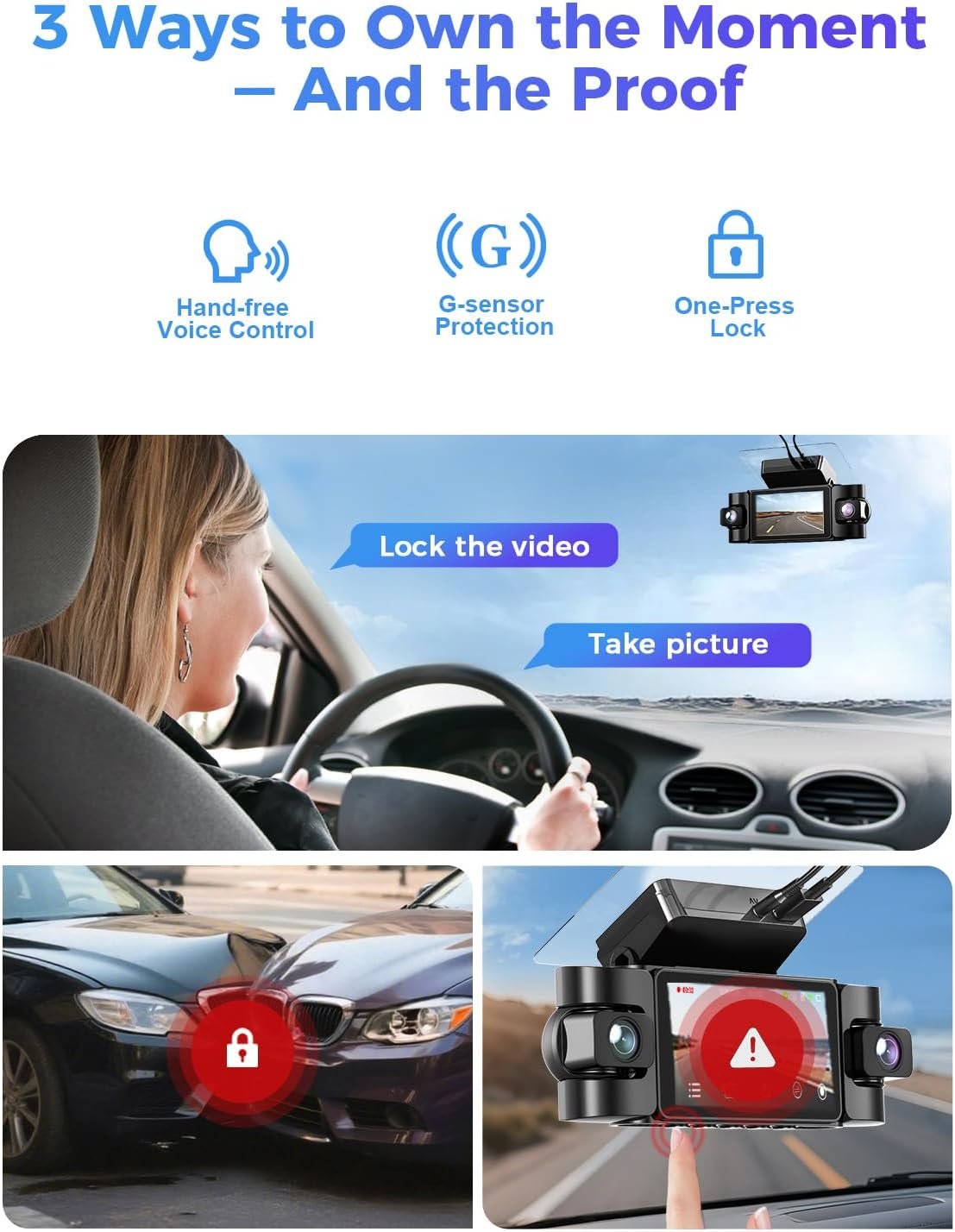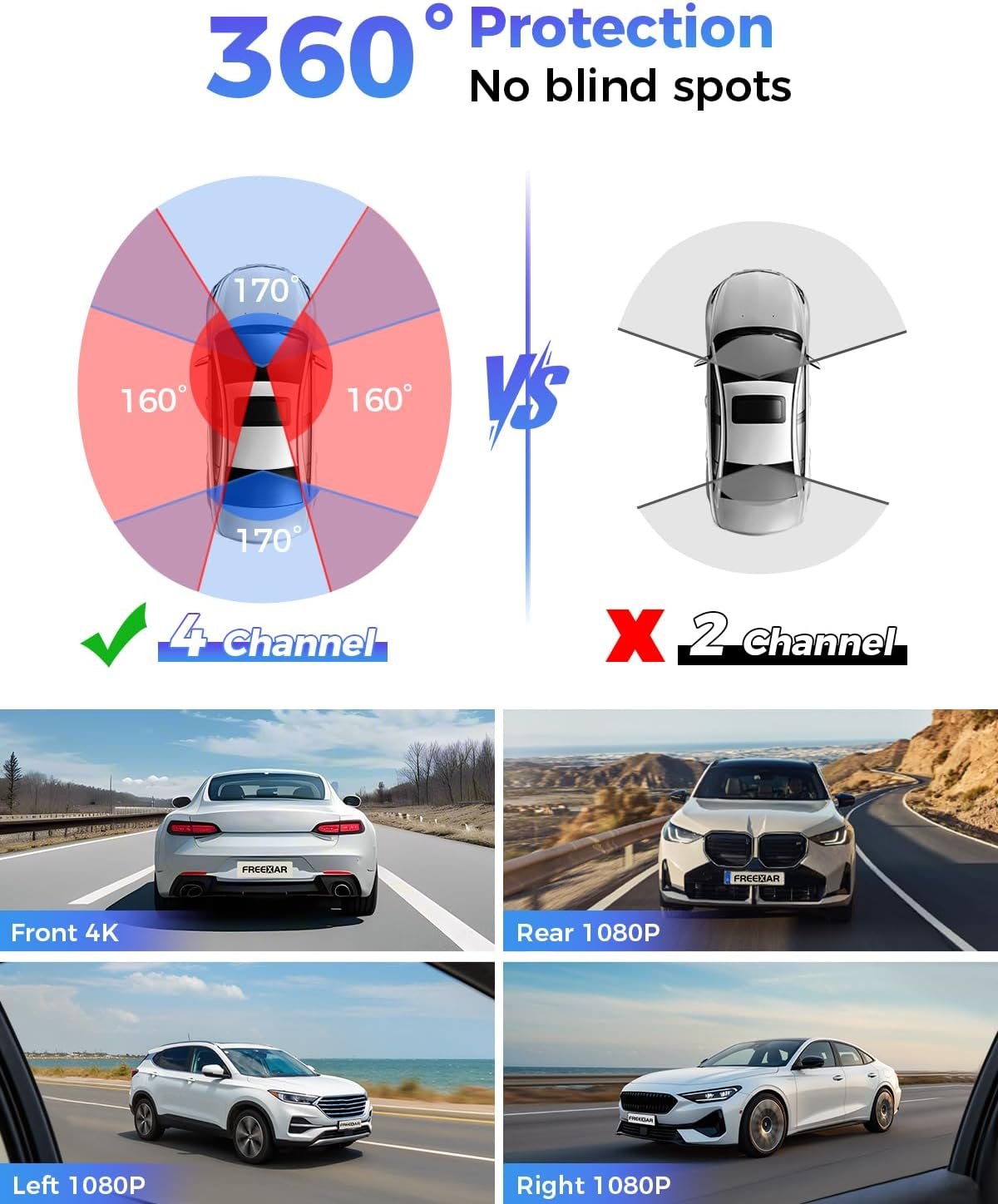 4K 360° Dash Cam, 4-Channel Dash Camera for Cars, Full Coverage Front Rear Left Right Inside with GPS, 5.8GHz Wi-Fi & App, Night Vision, Voice Control, 24H Parking Mode, 128GB Card Included