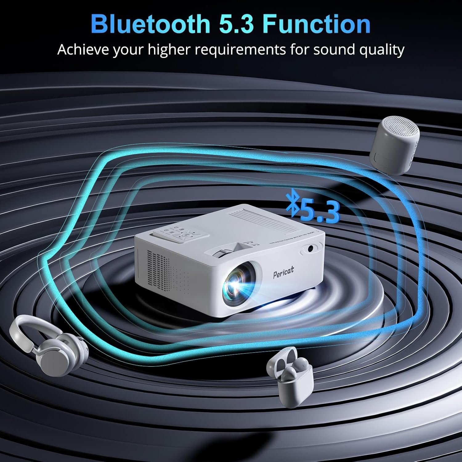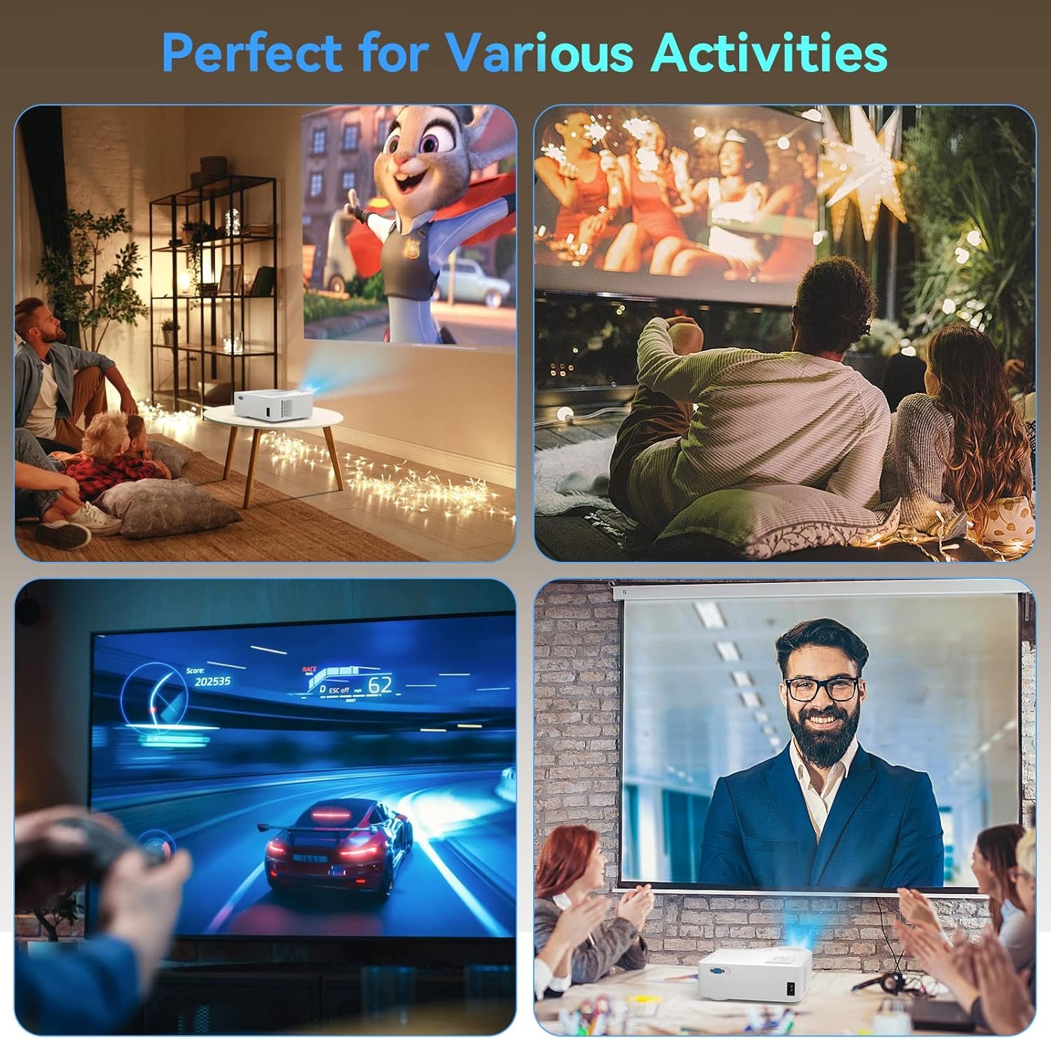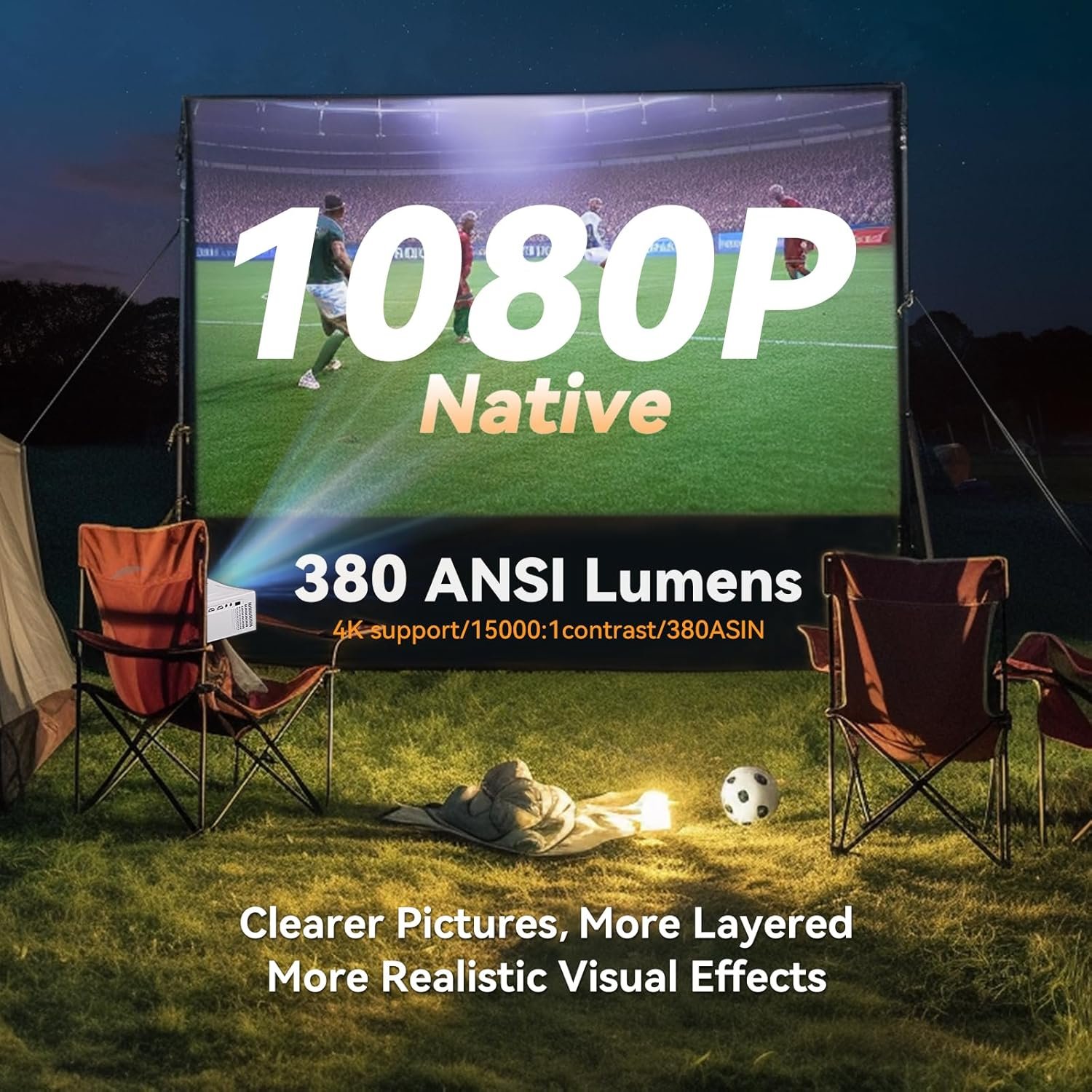 5G WiFi Bluetooth Projector, Native 1080P Outdoor Movie Projector with 200″ Display, 380ANSI Home Theater Video Projector 4K Supported, LED Video Projector Compatible with TV Stick, Phone/PC