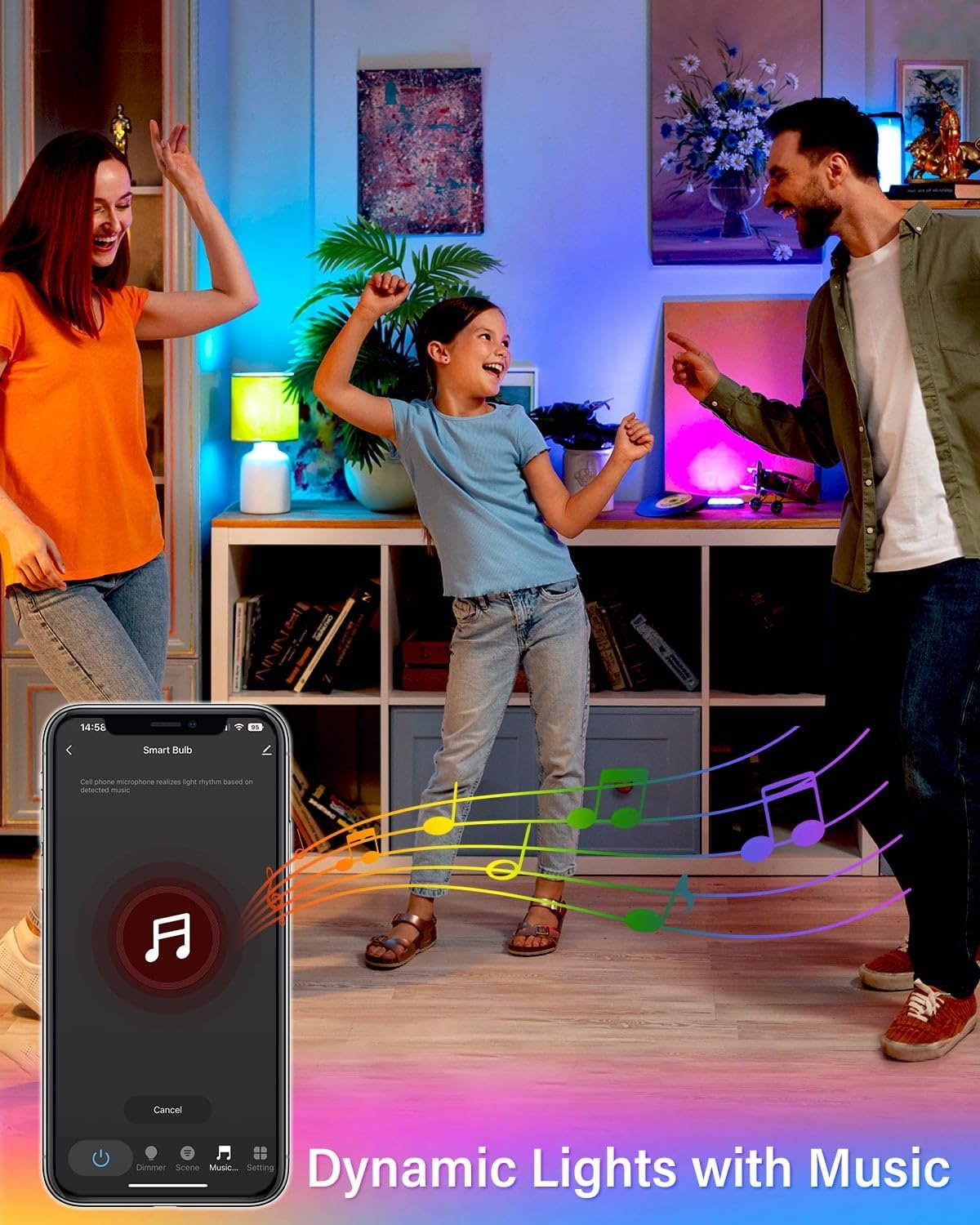 phopollo Smart Light Bulbs, RGBCW WiFi Multicolor Led Light Bulbs Compatible with Alexa & Google Home Assistant, A19 E26 9W 60W Equivalent 800Lumen, App Control, No Hub Required, 12 Pack
