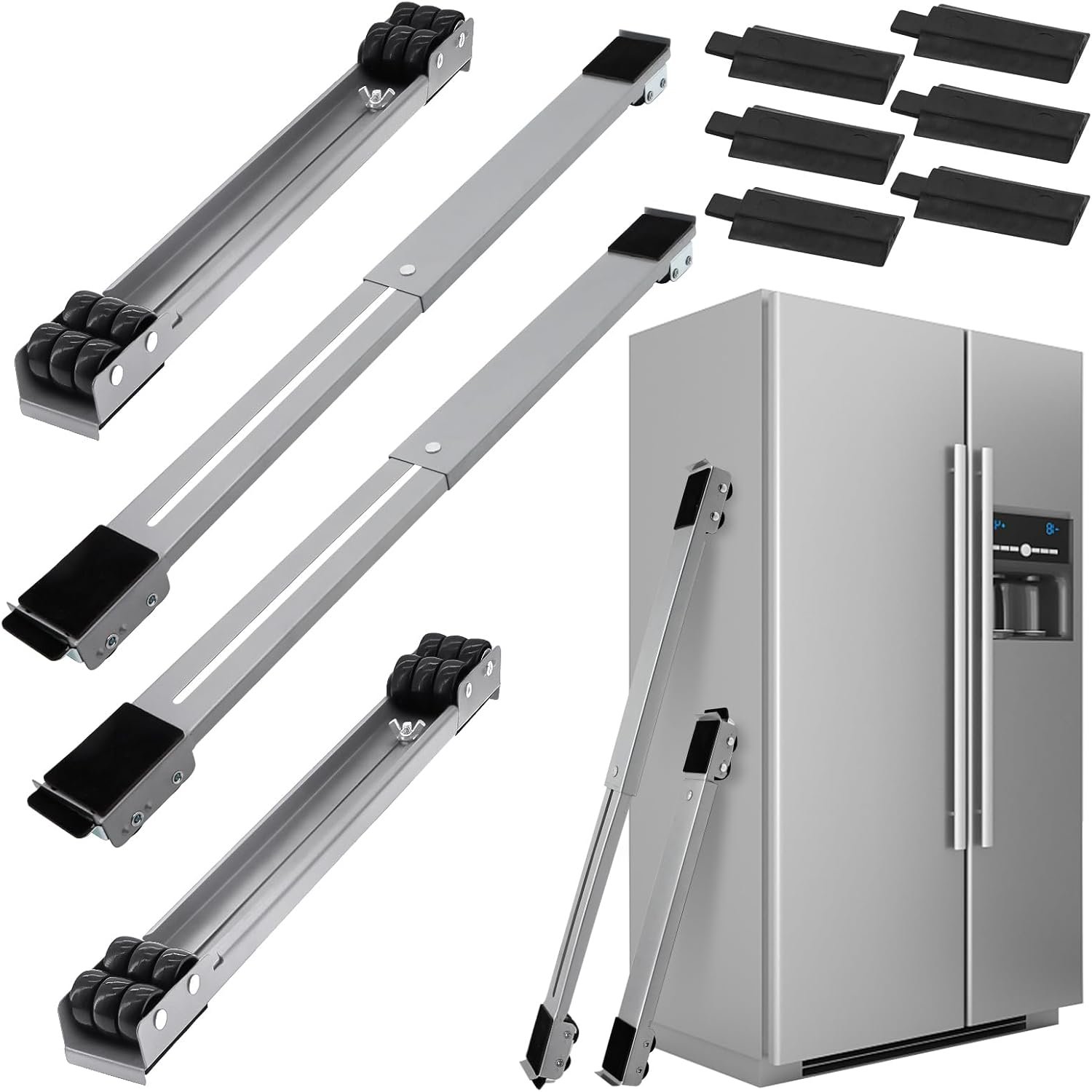 6 Pcs Extendable Furniture Appliances Rollers, Mover Tools with 24 Roller Brake Equipment for Heavy Washing Dryer Machine Refrigerator for Mobile Wheels Strong Base Stand Hold Up to 660 lb Grey