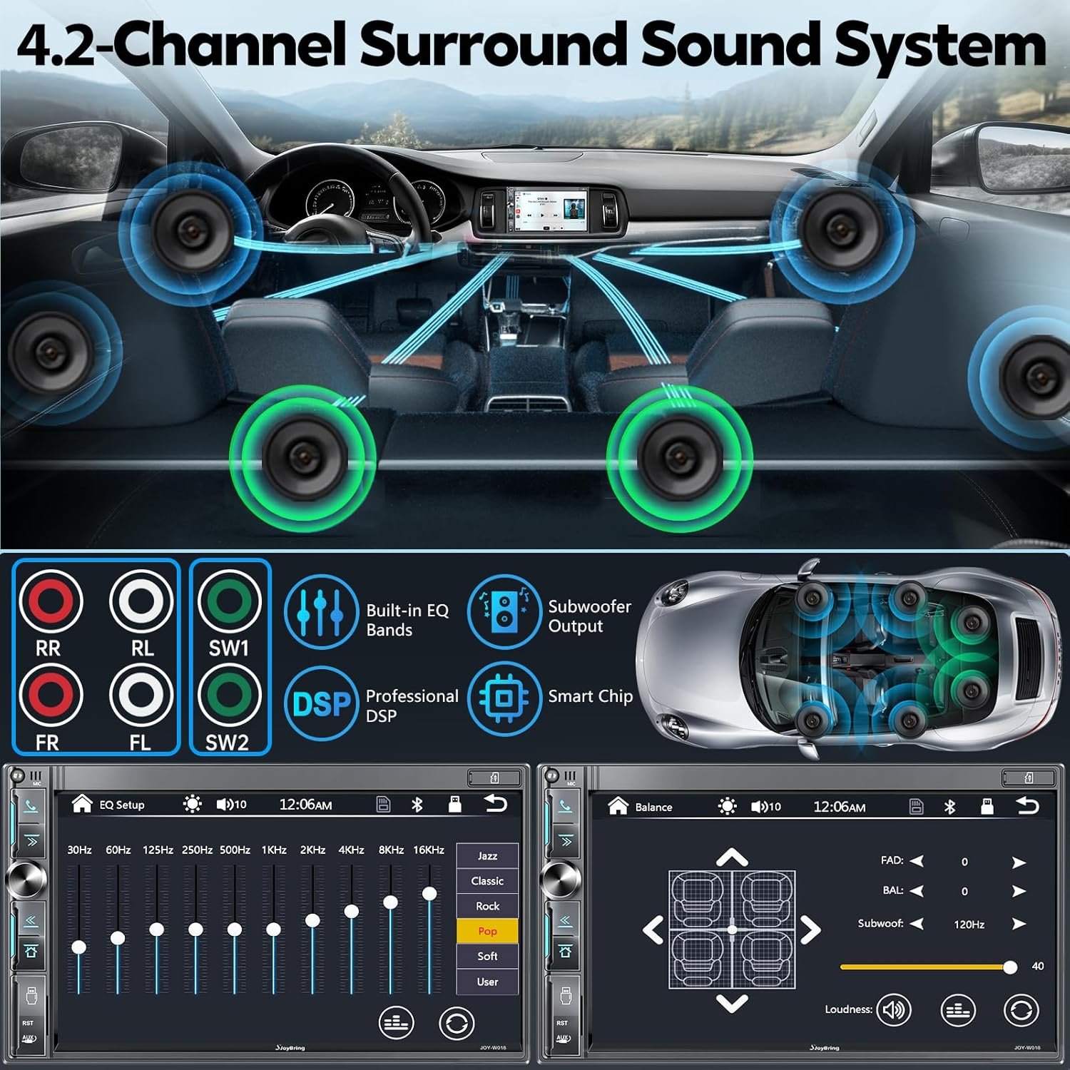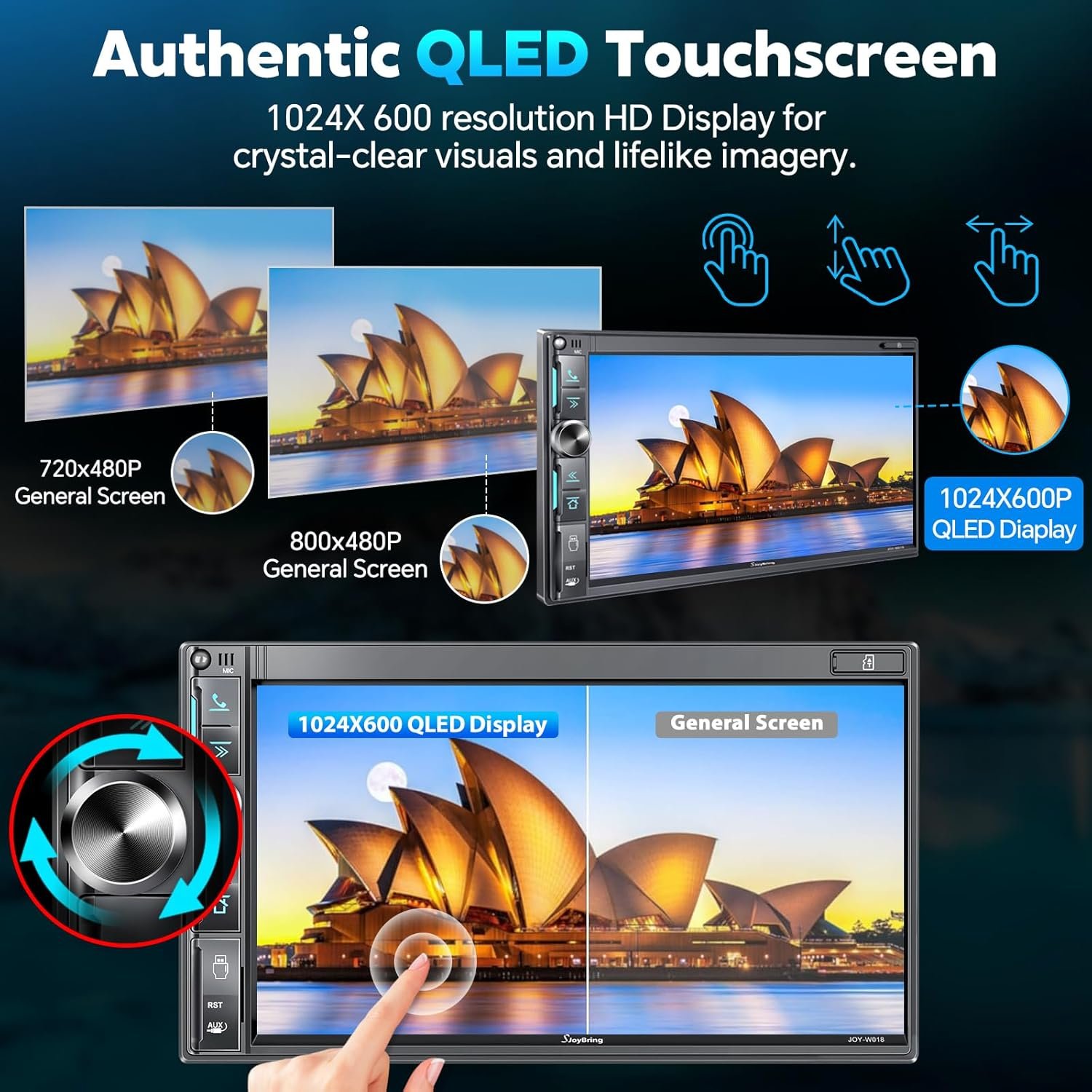 7″ Double Din Car Stereo with Wireless Apple CarPlay & Android Auto, QLED Touchscreen, Bluetooth, Backup Camera, 4.2-CHN Audio, 2 Subwoofer Outputs, AM/FM Car Radio