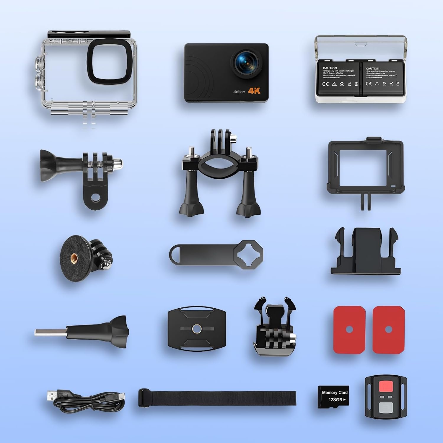 Action Camera 4K 60FPS 48MP, EIS Sports Camera with 128GB Card,131FT Underwater Waterproof Camera with Case, 2inch Touch Screen, 8X Zoom, Remote Control, Batteries & Mounting Kits