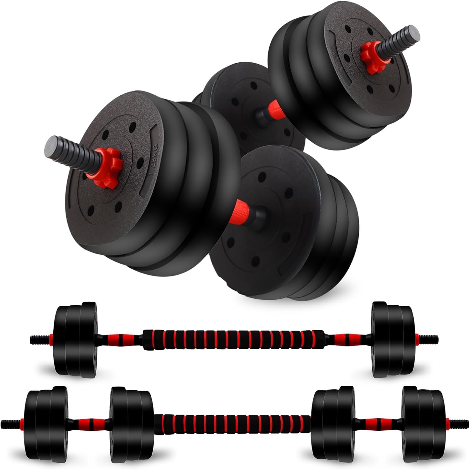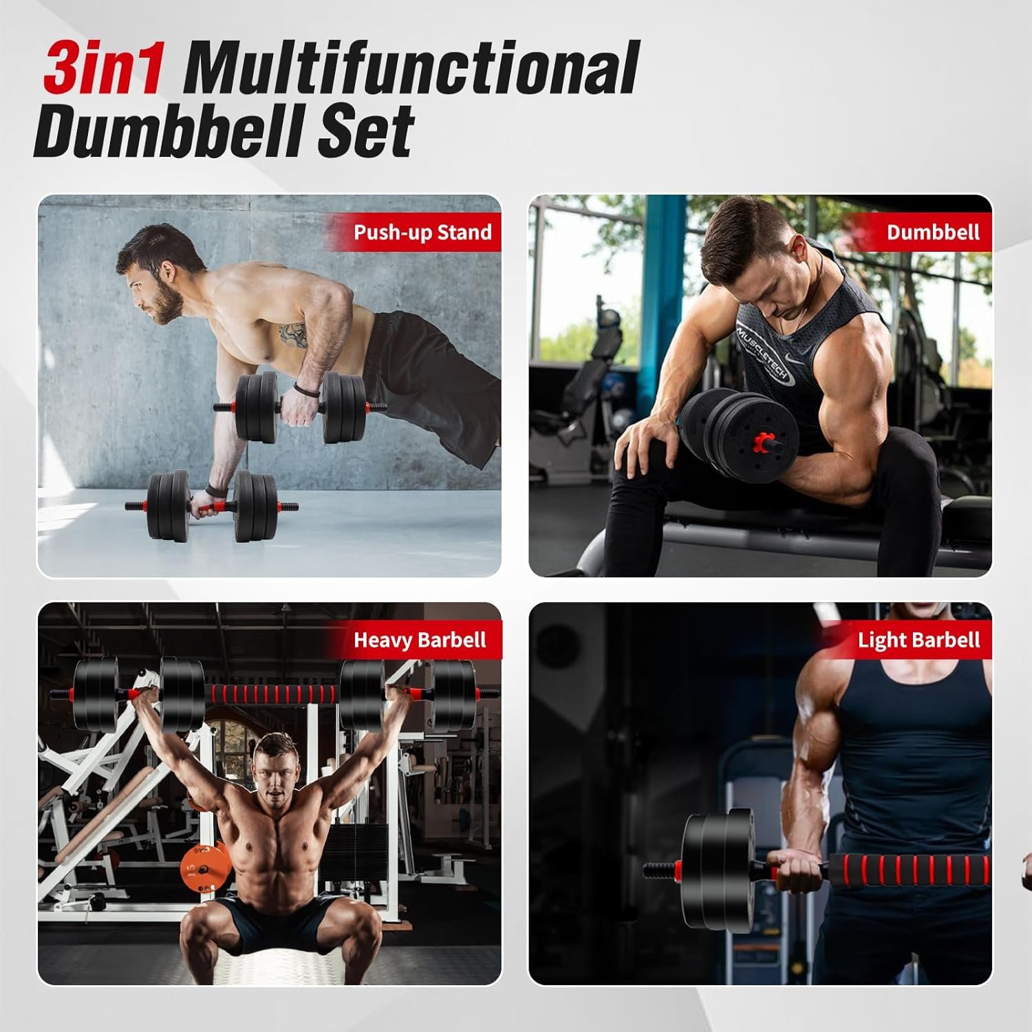 Adjustable Dumbbell Set, 40lbs Free Weights with Connector, Convertible Dumbbell Barbell Push-up Stand Set, 3 in 1 Home Gym Fitness Weight Set for Men/Women