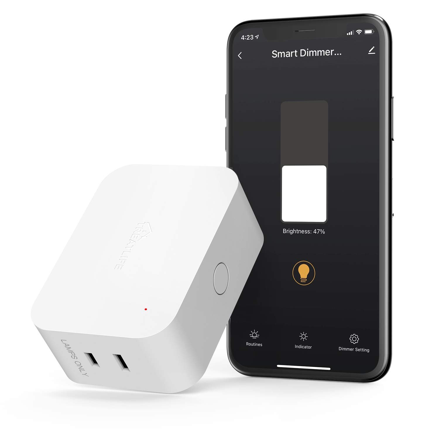 Alexa Smart Dimmer Plug, Treatlife Plug-in Lamp Dimmer Switch for Dimmable LED, CFL, Halogen and Incandescent Bulbs, Lamps, String Lights, Max Power 300W, Dual Outlets, 2.4GHz WiFi Only