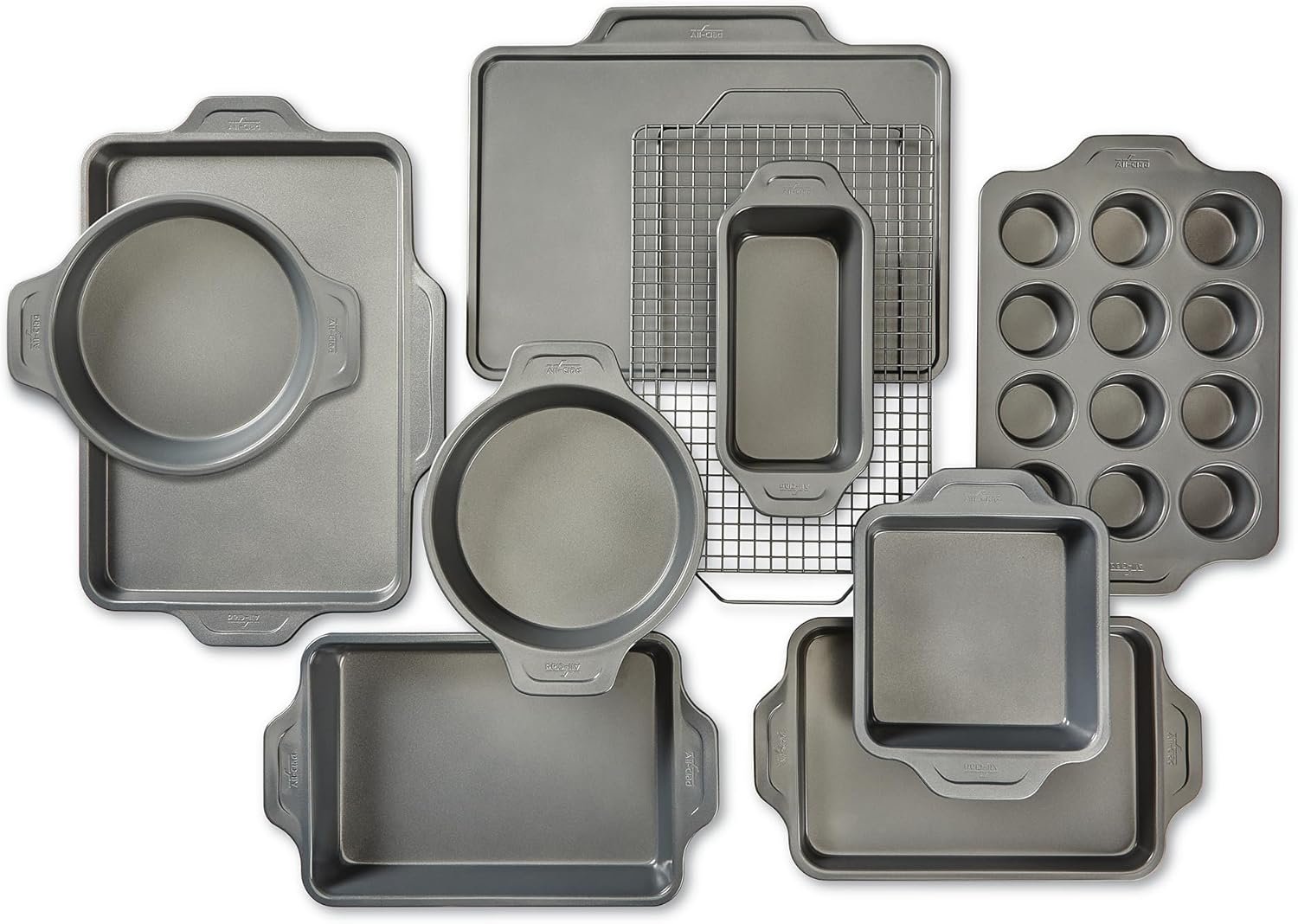 All-Clad Pro-Release Nonstick Bakeware Set 10 Piece Oven Safe 450F Half Sheet, Cookie Sheet, Muffin Pan, Cooling & Baking Rack, Round Cake Pan, Loaf Pan, Baking Pan Grey