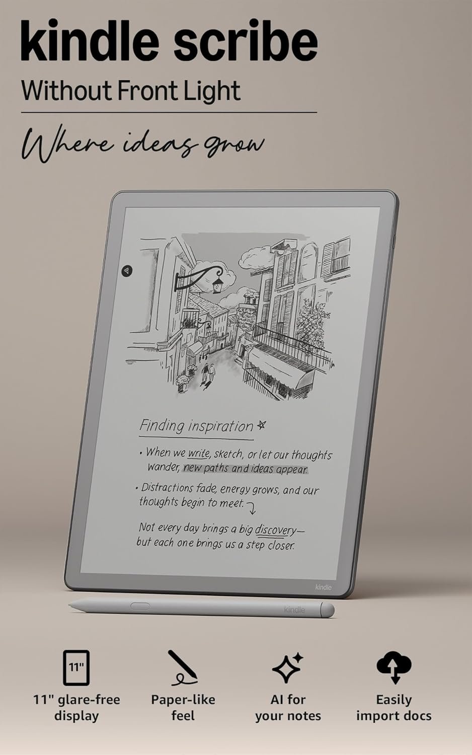 Amazon Kindle Scribe without Front Light 16GB (newest model) — 11” paper-like display — Thinner, lighter, faster — Write in notebooks, documents, and books