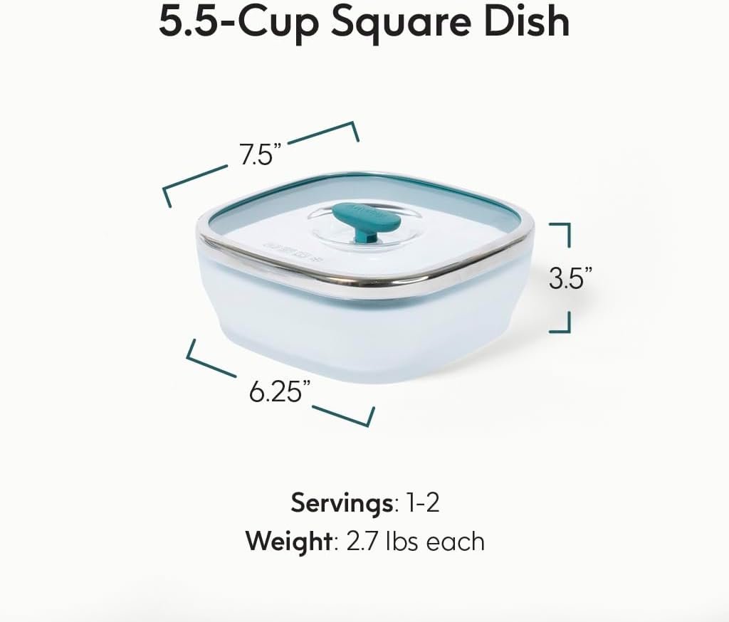 Anyday 5.5-Cup Square Glass Food Storage with Glass Lid | Plastic-Free Meal Prep & Microwave Cookware | Stackable Airtight Storage Container with Vented Lid for Microwave-Safe Reheating