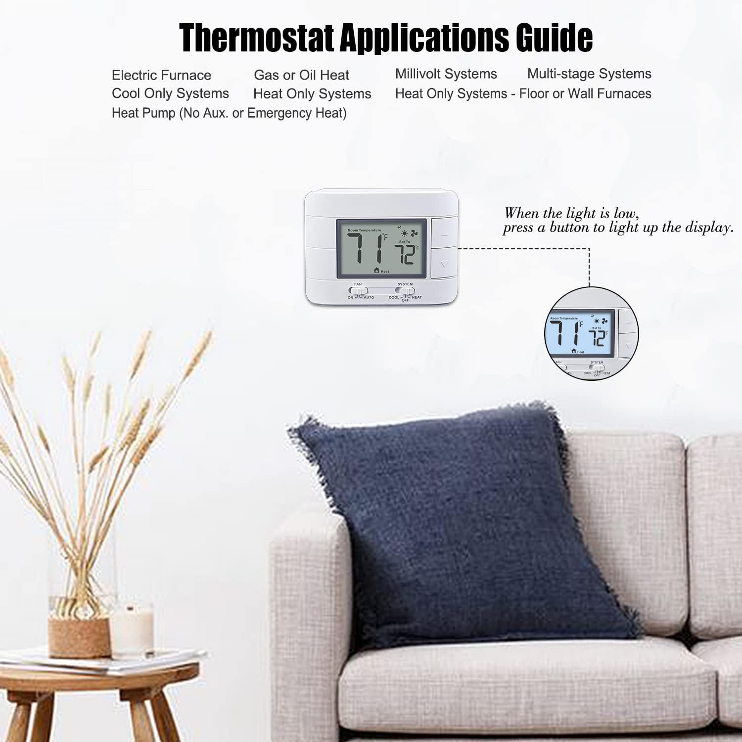 Aowel Non Programmable Thermostat for Home 2 Heat 2 Cool Multistage System, with Room Temperature & Humidity Monitor (LCD White Backlit Screen)