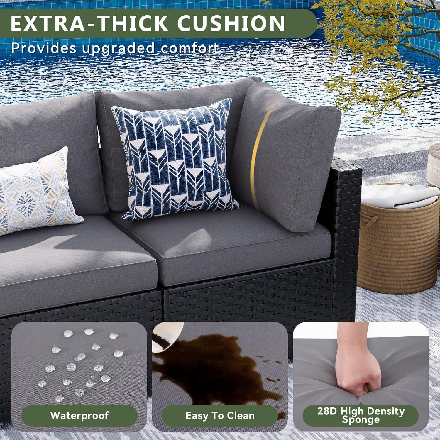 Devoko 5 Pieces Patio Furniture Sets All Weather Outdoor Sectional Patio Sofa Manual Weaving Wicker Rattan Patio Seating Sofas with Cushion and Glass Table(Beige)