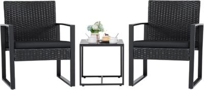 Aoxun Outdoor Patio Furniture Set with 44” Fire Pit Table, 7 Pcs Outdoor Patio Furniture Sets with 4in Thicken Cushion, Widen Armrests Wicker Outdoor Sectional for Backyard (Waterproof Cover Include)