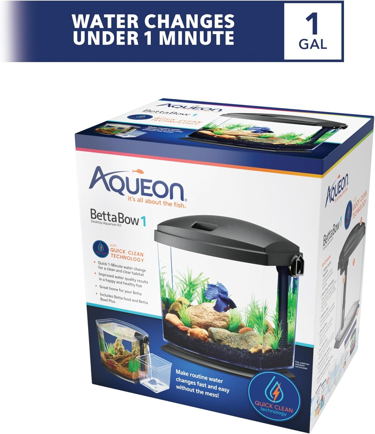 Aqueon BettaBow with Quick Clean Technology Aquarium Kit, Black Black 1 Gallon