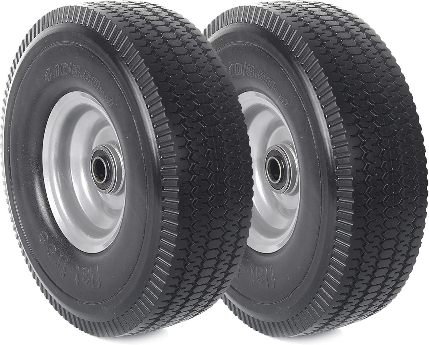 AR-PRO (2-Pack) 10-Inch Solid Wheel Replacement – 4.10/3.50-4 Flat Free Tire and Wheel with 5/8 extra 3/4 &1/2 Bearings and 2.2″ Offset Hub – Compatible with Hand Truck, Generator, Gorilla Carts