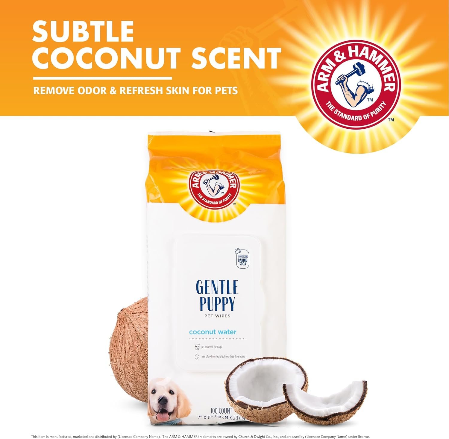Arm & Hammer Dog Grooming Wipes – Natural Deodorizing Pet Wipe with Coconut – Travel Essential & Supplies for Dogs – Dog Whole Body & Face Cleaning – Odor Eliminator with Baking Soda Power – 100 Count