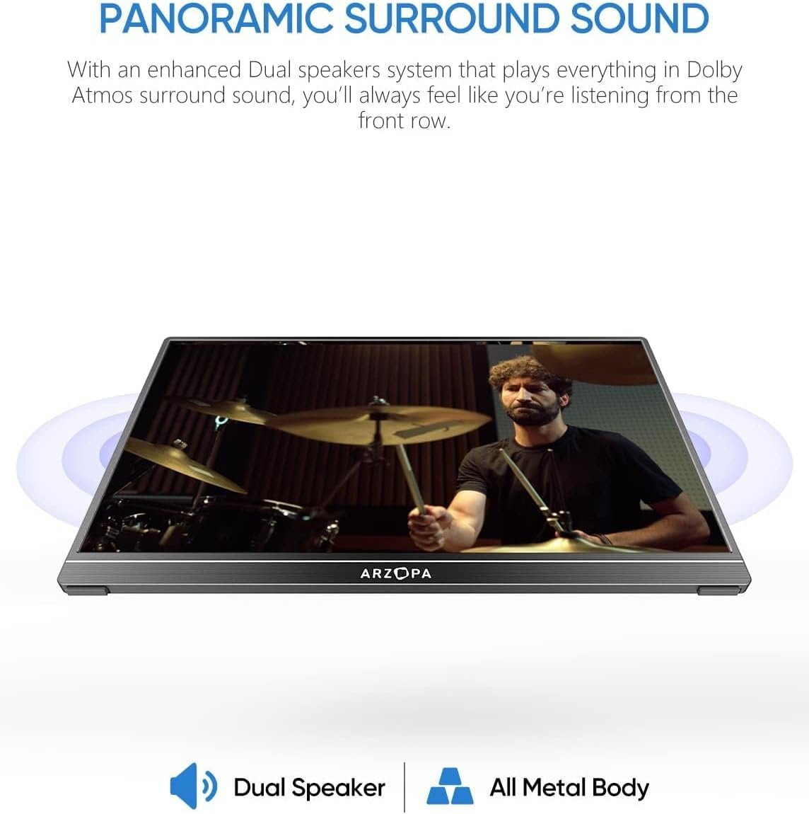 ARZOPA Portable Monitor 15.6” FHD 1080P – Ultra-Slim Portable Laptop Monitor with Kickstand – IPS Display for PC, MAC, Phone, Xbox, PS5 – USB C & HDMI Connectivity – A1