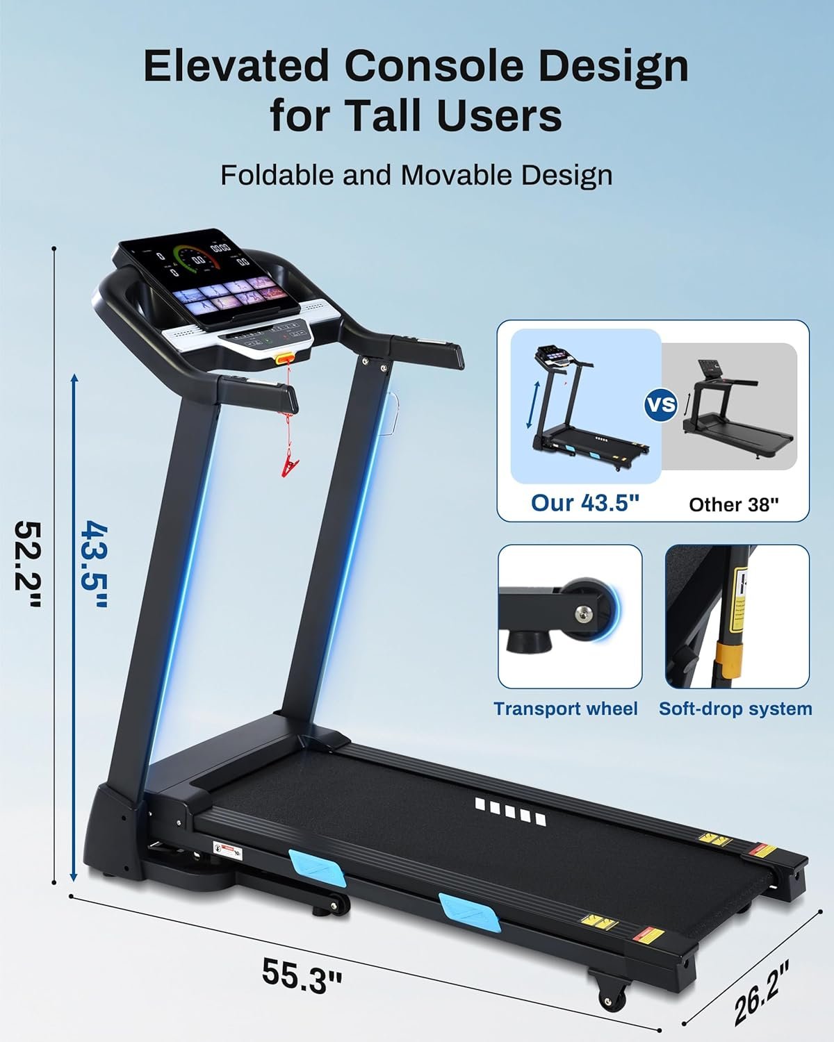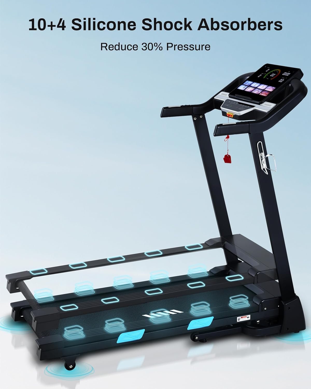 Folding Treadmill with Incline, 3.0 HP Quiet Treadmills for Home, 350 lbs Weight Capacity & 7.6 MPH, Incline Treadmill with Pulse Sensor and Bluetooth Speaker, Wide Belt, App, LED Display