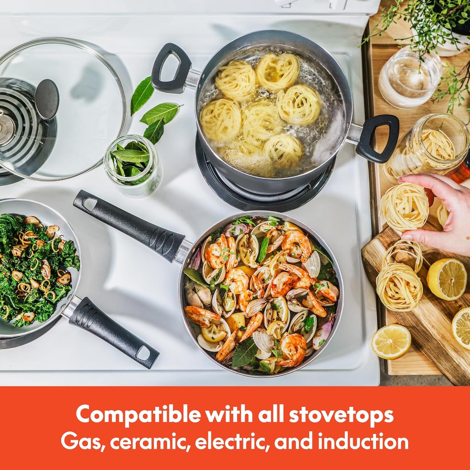 BELLA Nonstick Cookware Set with Glass Lids – Aluminum Bakeware, Pots and Pans, Storage Bowls & Utensils, Compatible with All Stovetops, 21 Piece, Black
