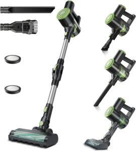 Cordless Vacuum Cleaner, Lightweight Stick Vacuum Cleaner, 6 in 1, Self-Standing with Powerful Suction, 180° Bendable Wand Rechargeable Cordless Vacuum for Hardwood Floor (Green)
