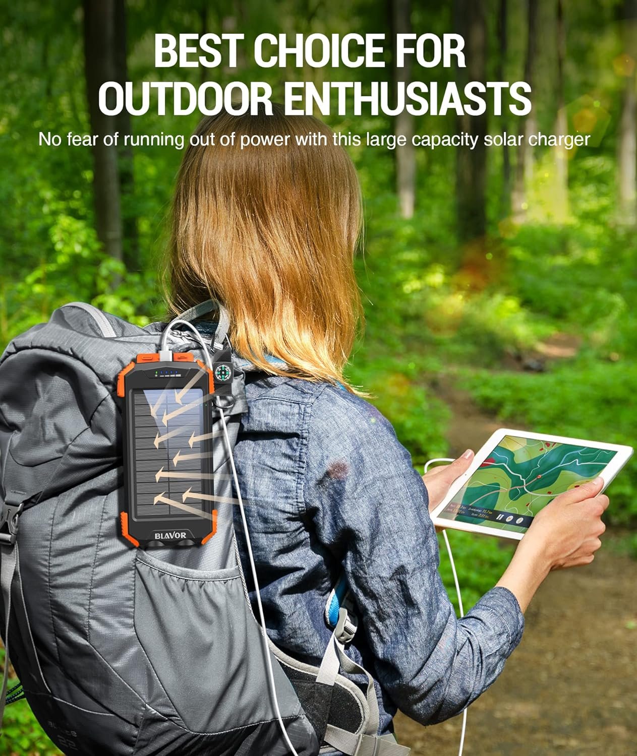 BLAVOR Solar Power Bank 10,000mAh, Portable Wireless Charger, 20W Fast Charging External Battery Pack with USB C for Cell Phones, Solar Panel Charging with Dual Flashlight for Camping