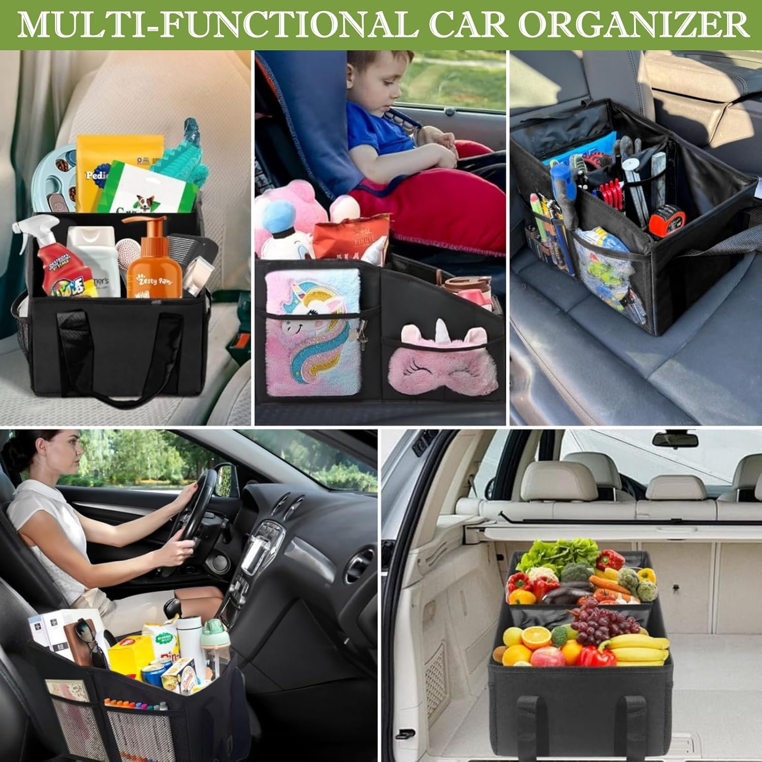 Car Trunk Organizer Car Storage Organizer Collapsible Multi Compartment Car Organizer Adjustable Straps for SUV(Beige)