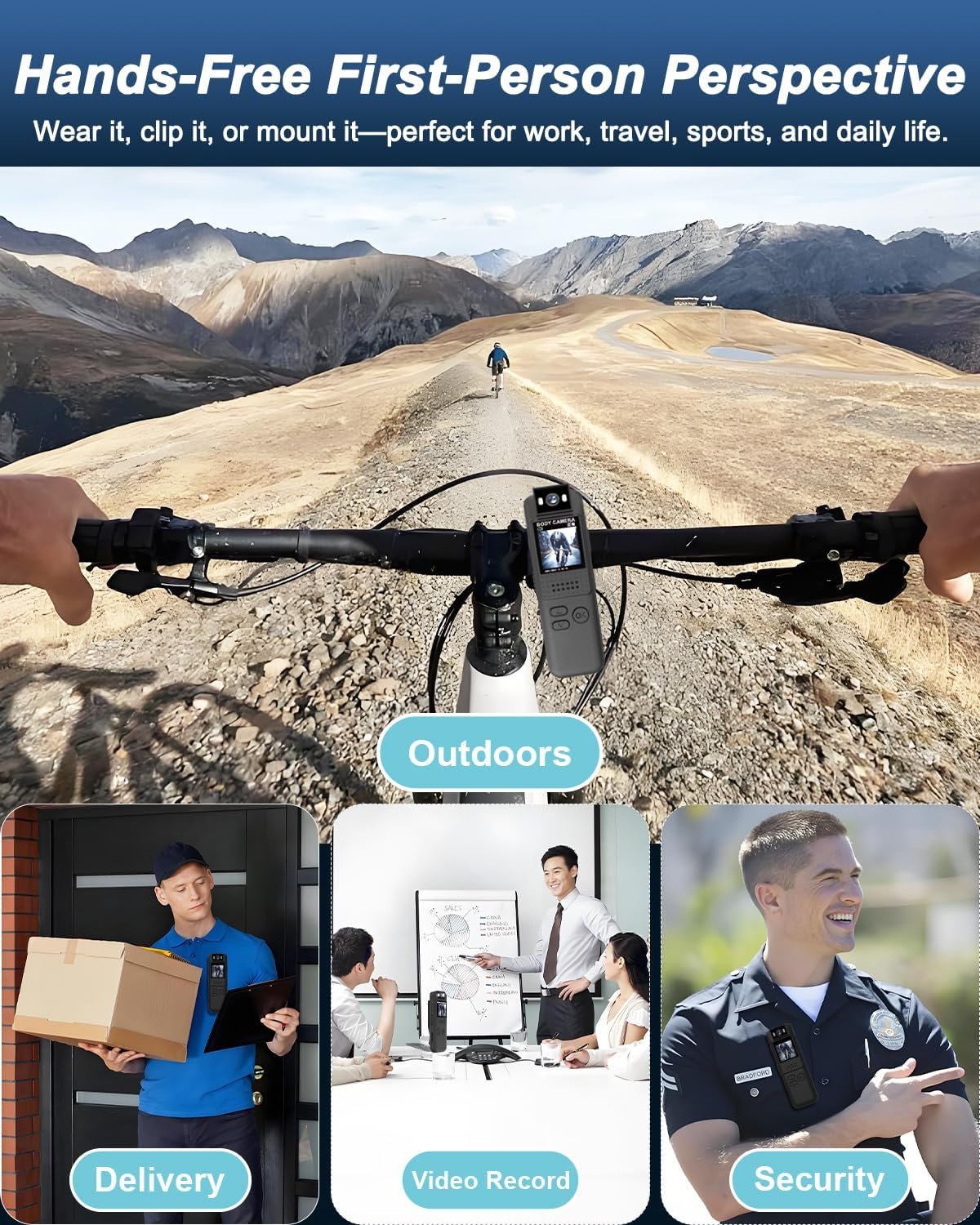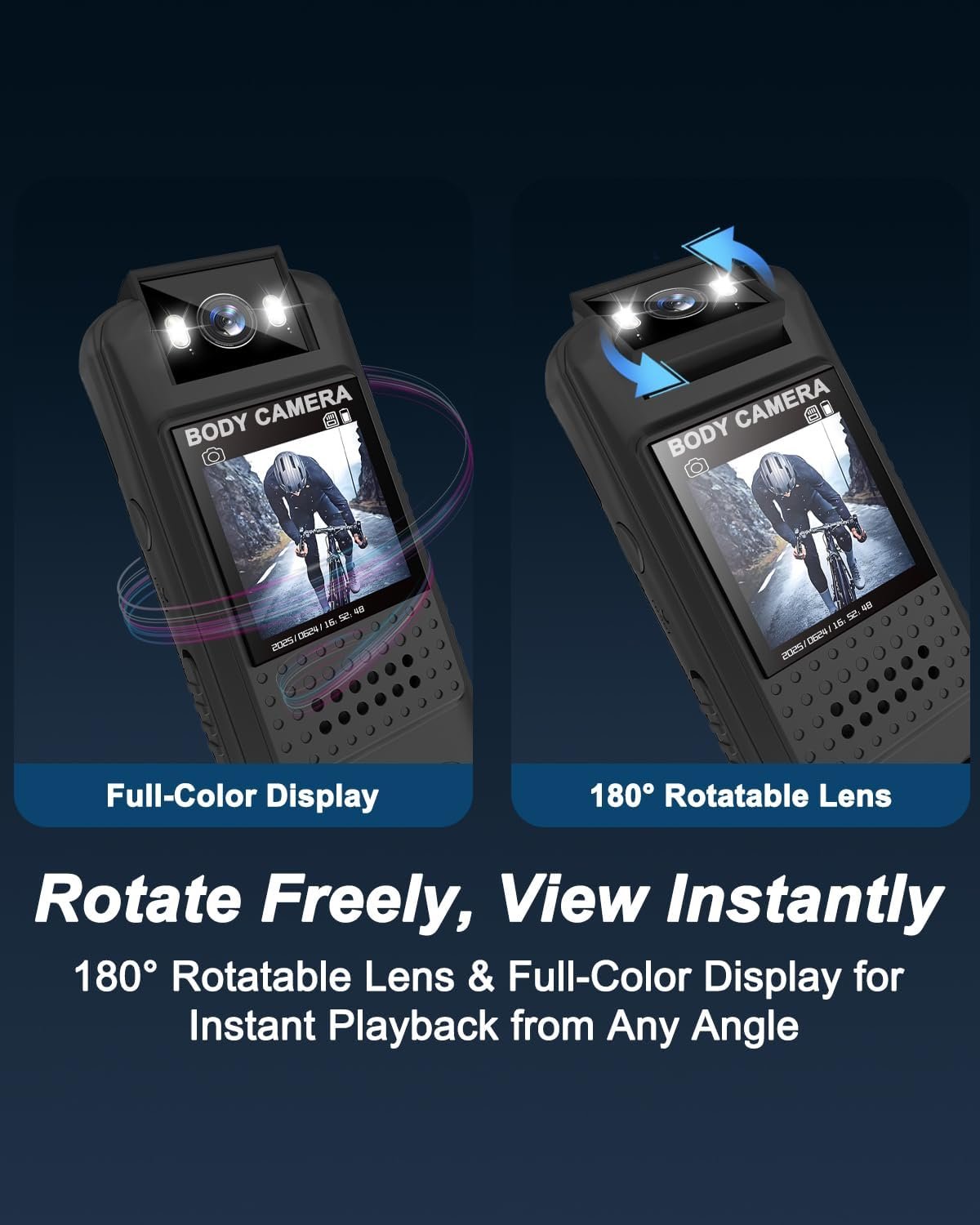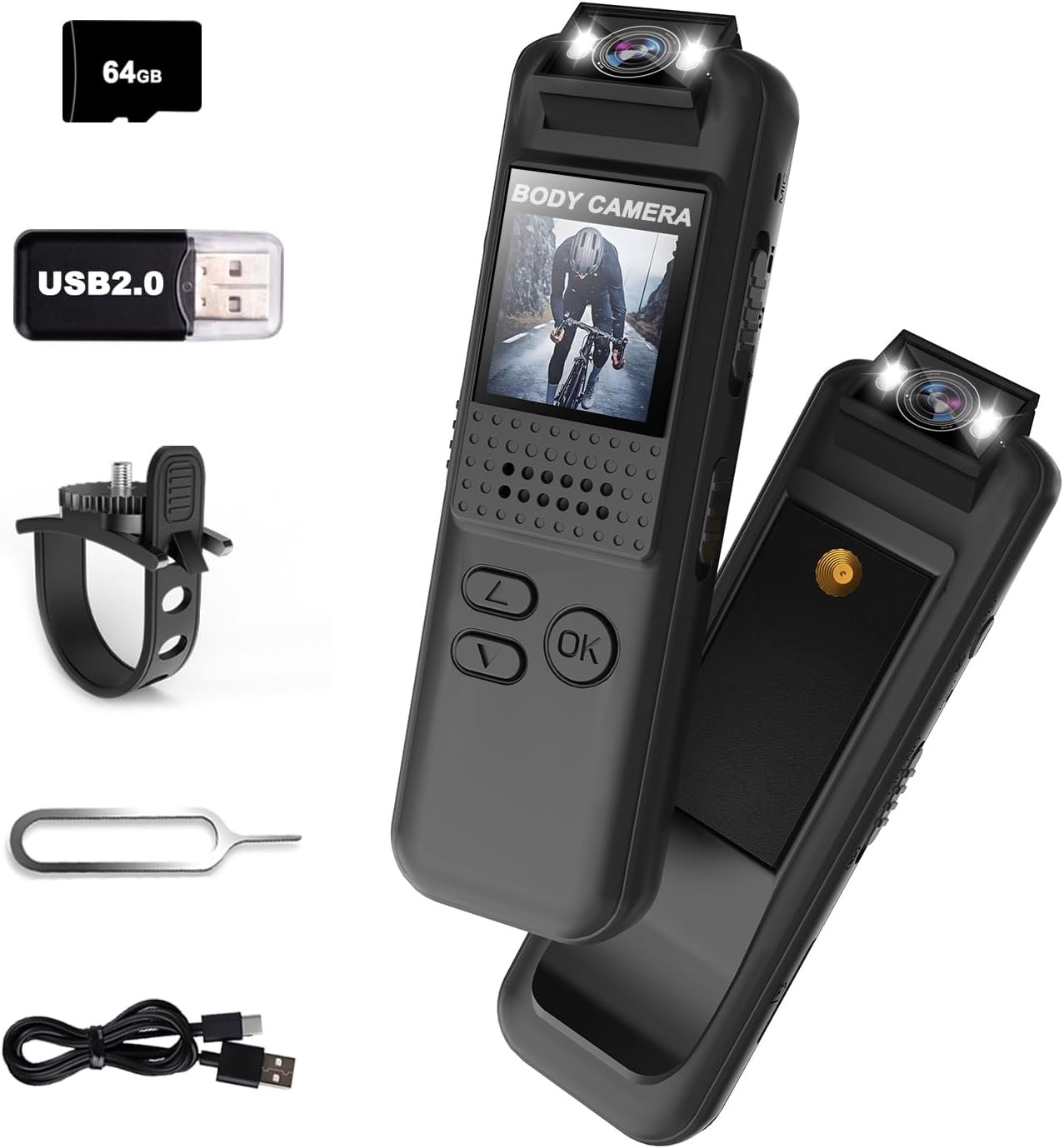 Body Camera, Mini Sports Camera with 64GB TF Card, 1080P HD Body Cam, 180° Rotatable Lens, Small Action Video Camcorder with Magnetic Back Clip & Bike Mount, POV Cam for Bike, Outdoor Use