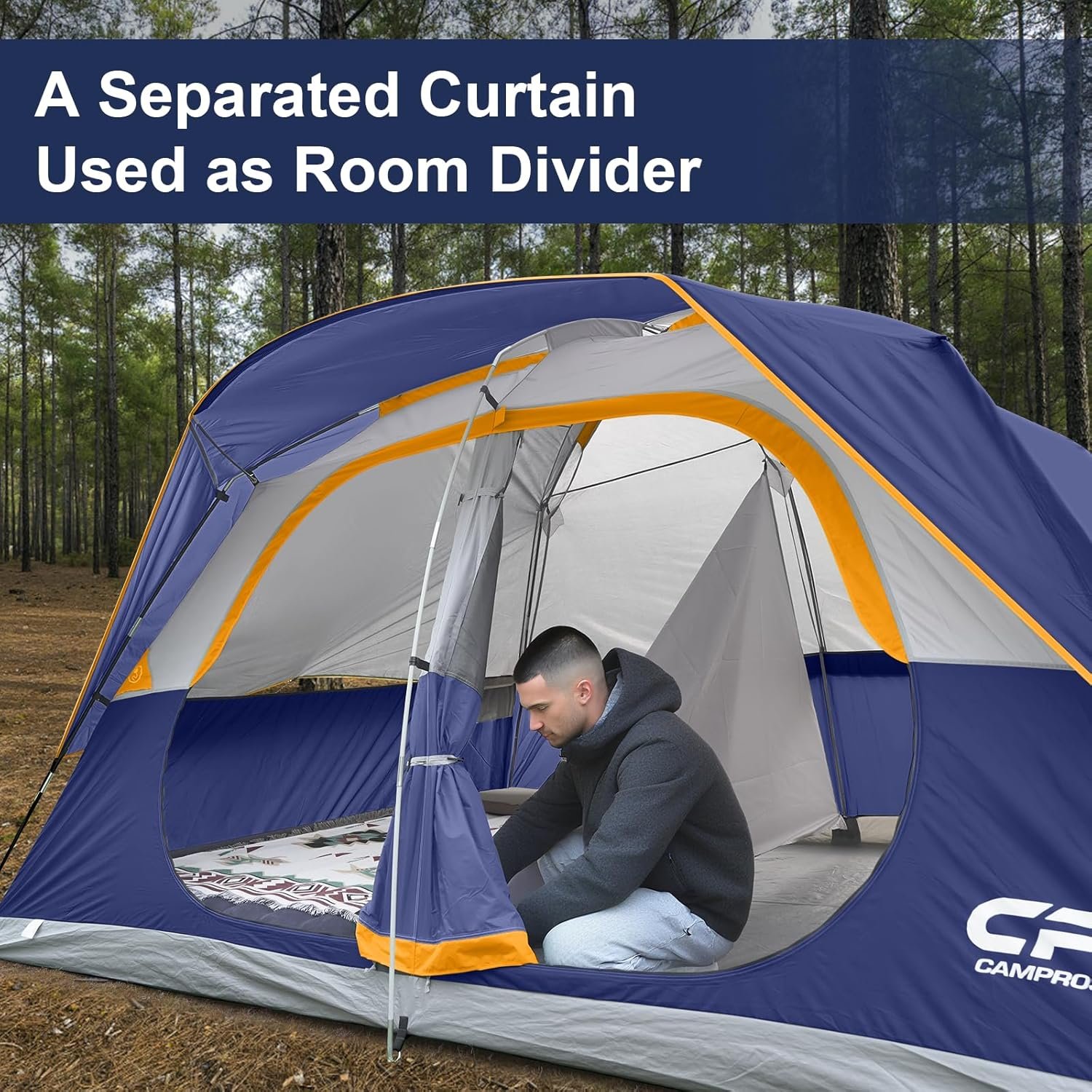 CAMPROS CP Tent 8 Person Camping Tents, Waterproof Windproof Family Tent with Top Rainfly, Large Mesh Windows, Double Layer, Easy Set Up, Portable with Carry Bag, for All Seasons