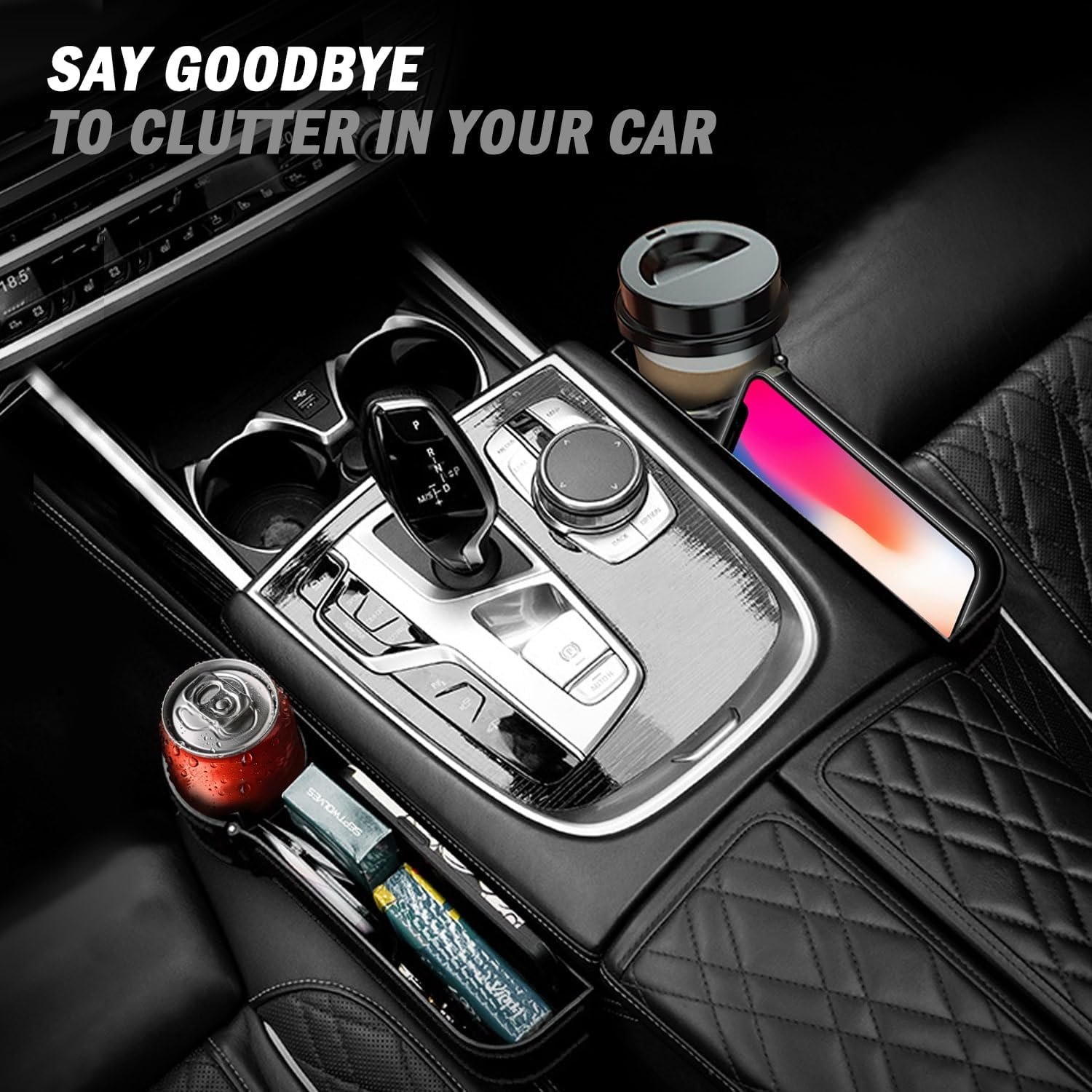 Car Seat Gap Filler Organizer, 2 Pack Multifunctional Car Seat Organizer with Adjustable Cup Holder, Universal Car Seat Storage Box for Phone, Glasses