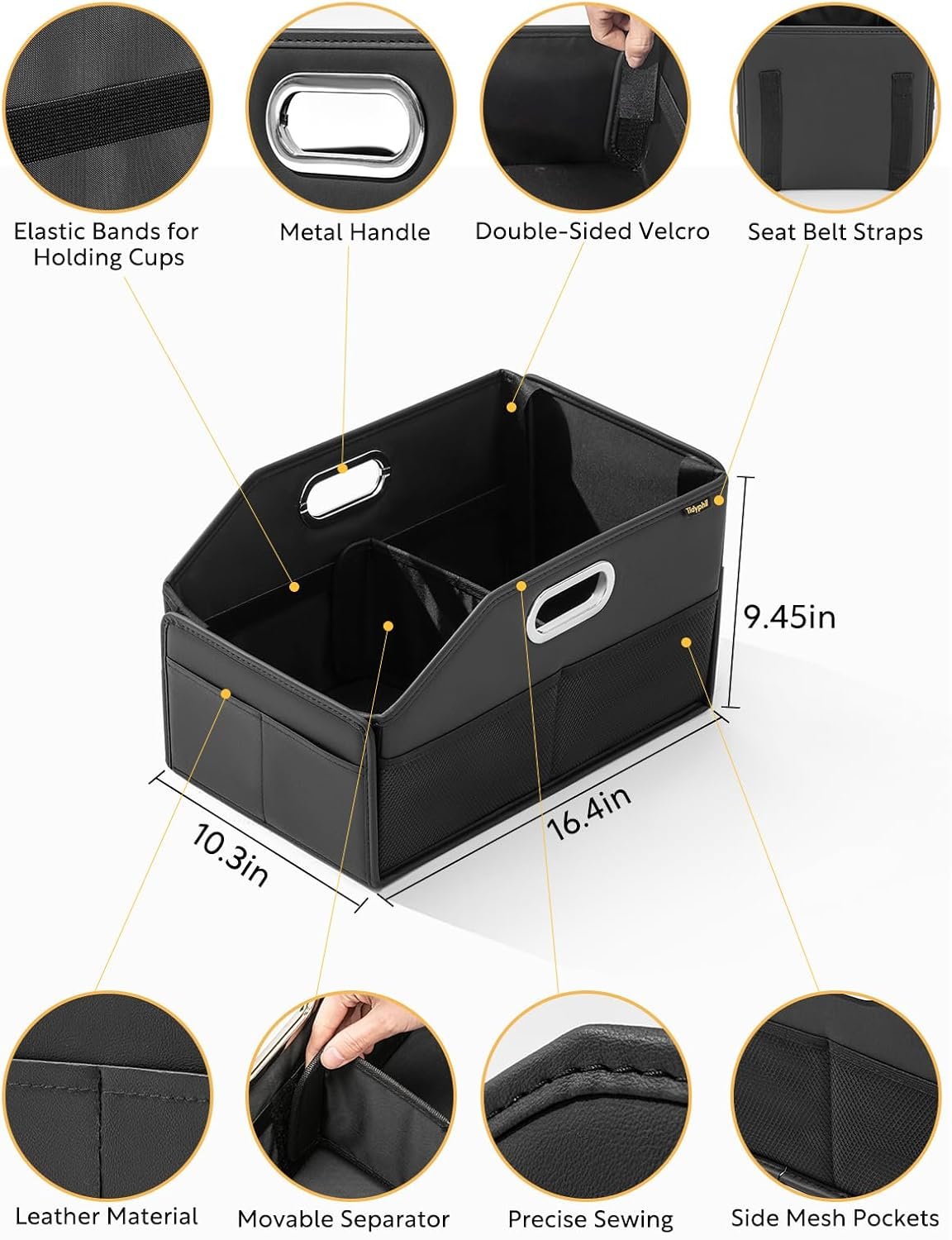 Car Seat Organizer, Front Seat Organizer, Collapsible Car Organizer and Storage for Backseat and Passenger Seat, Big Capacity with Elastic Bands can Hold Cups, Car Travel Essentials for Kids