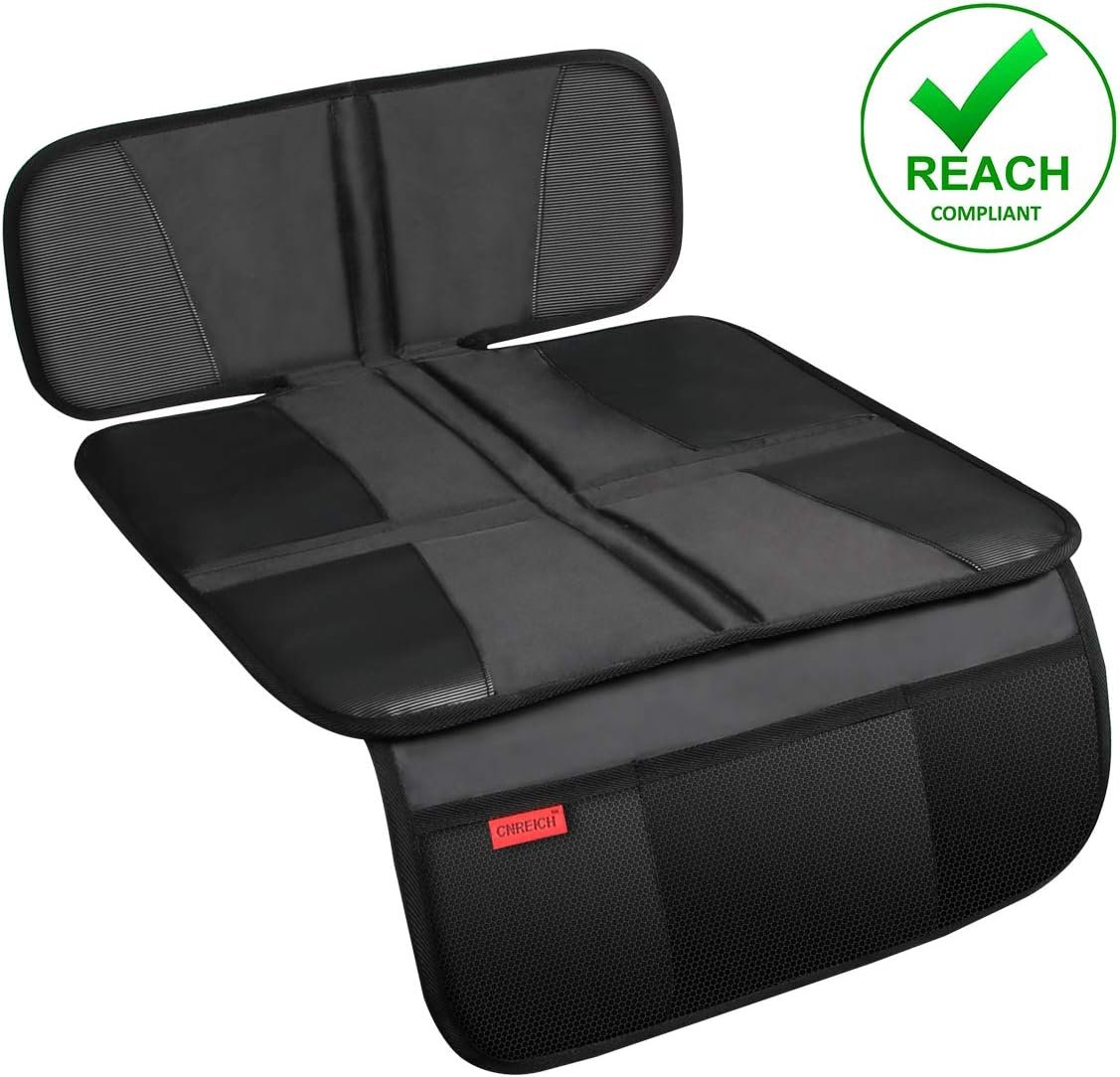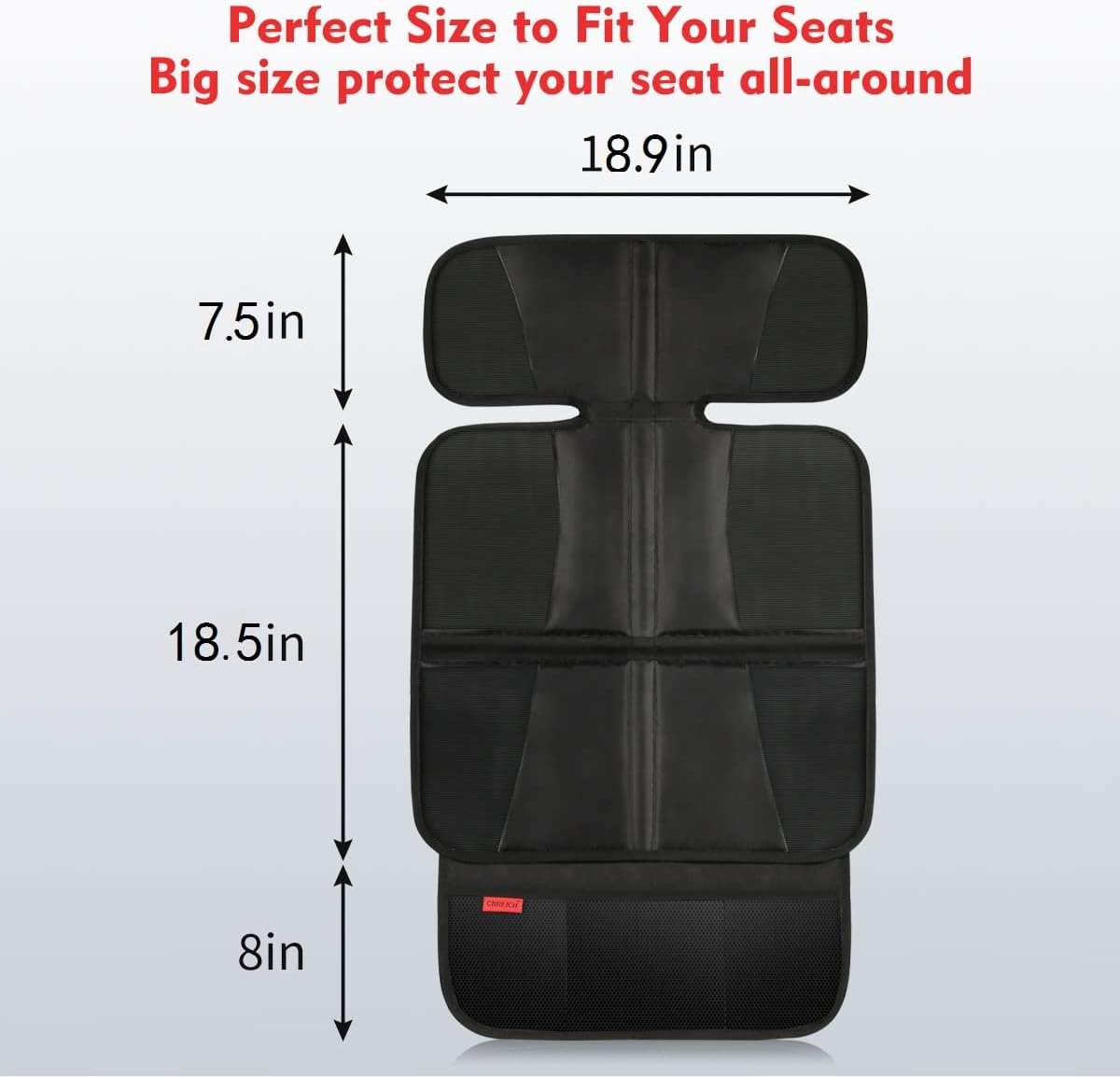 Car Seat Protector – Seat Protection Mat – Thick Padding – Durable, Waterproof Fabric, Leather Reinforced Corners & 3 Pockets for Handy Storage Black