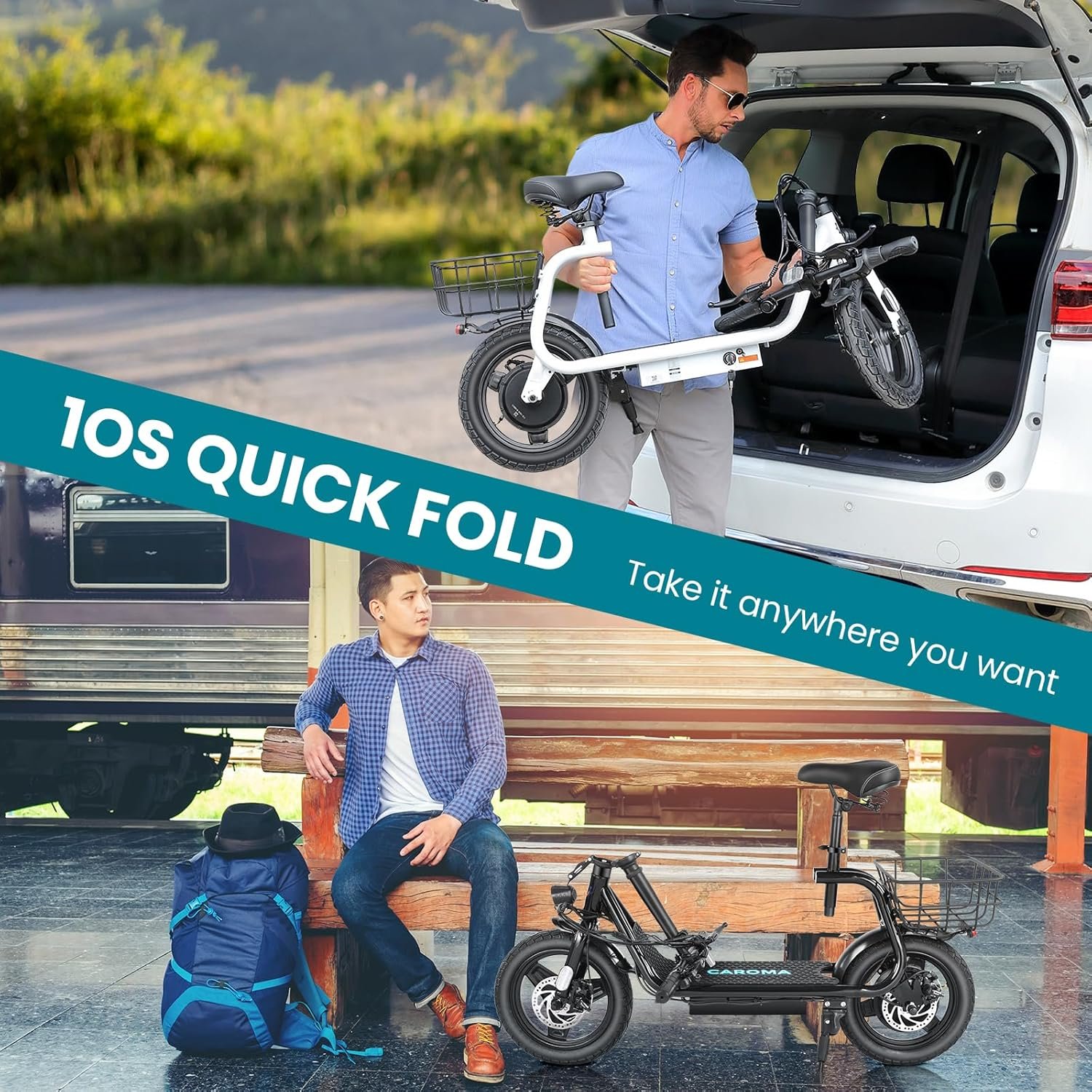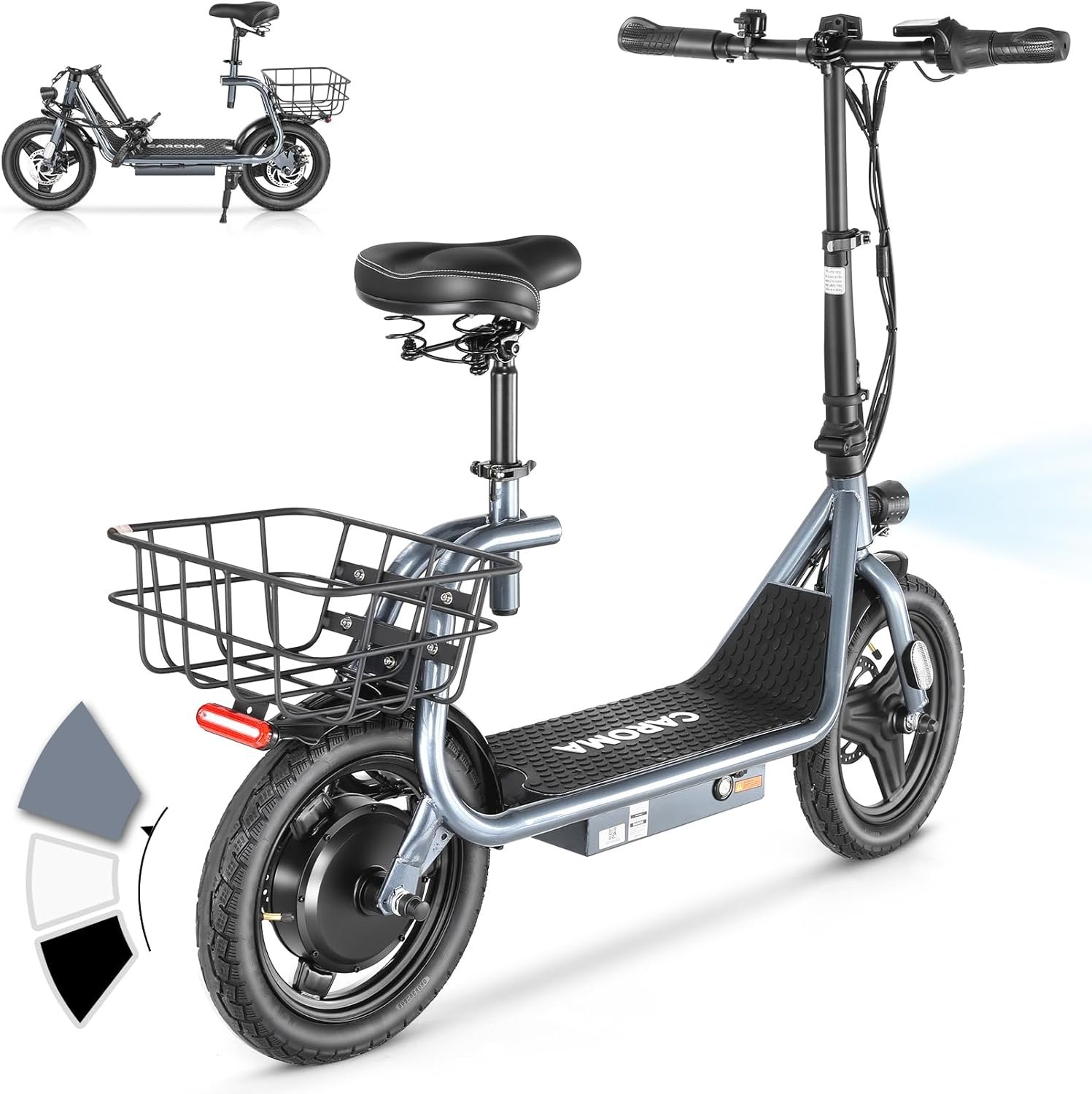 Caroma Peak 1200W/800W/500W Electric Scooter with Seat, 14″ Tire, Up to 30Miles & 20MPH, Max Load 300LBS, Foldable Electric Scooter Adults, Commuter Ebike for Adults&Teens, Dual Braking System