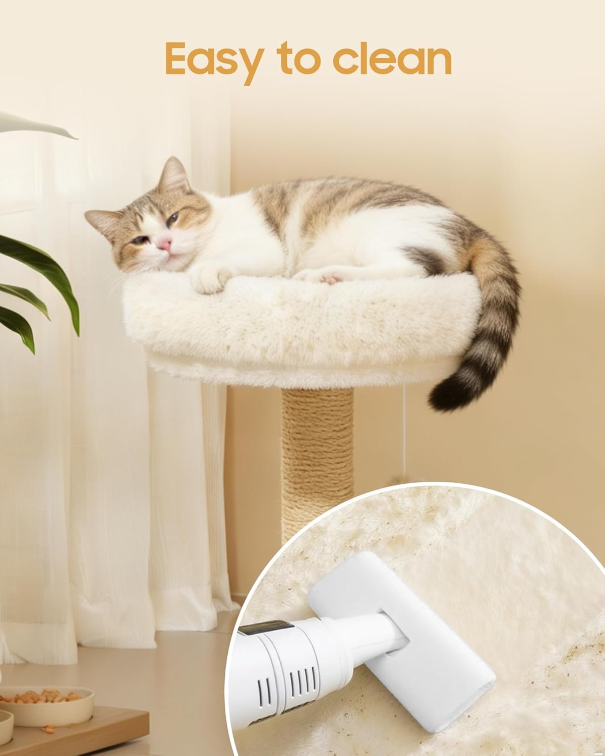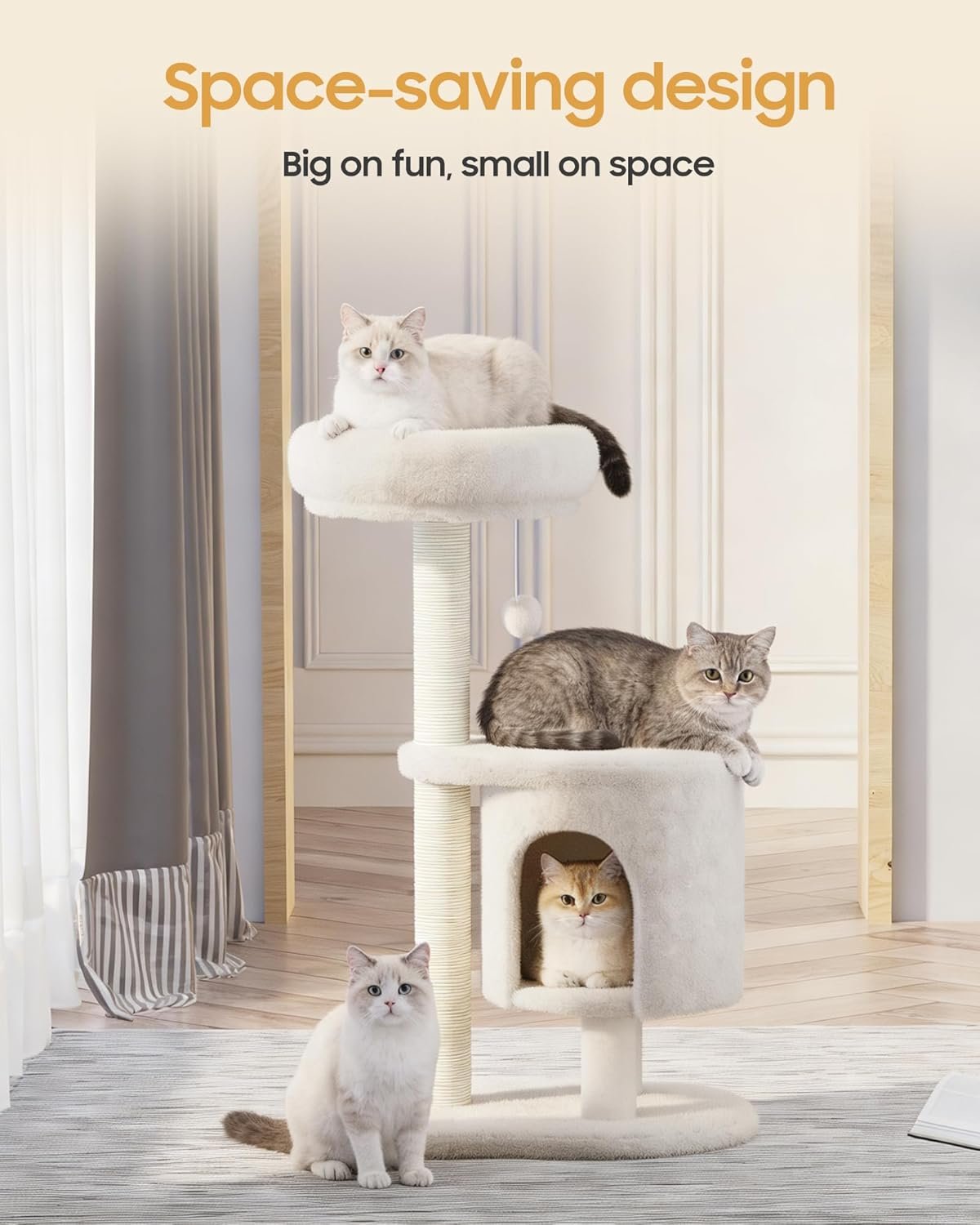 Cat Tree, 34.3 Inches Cat Tower with Scratching Post, Condo, Interactive Hanging Ball, Plush Perch for Indoor Large Cats, Beige