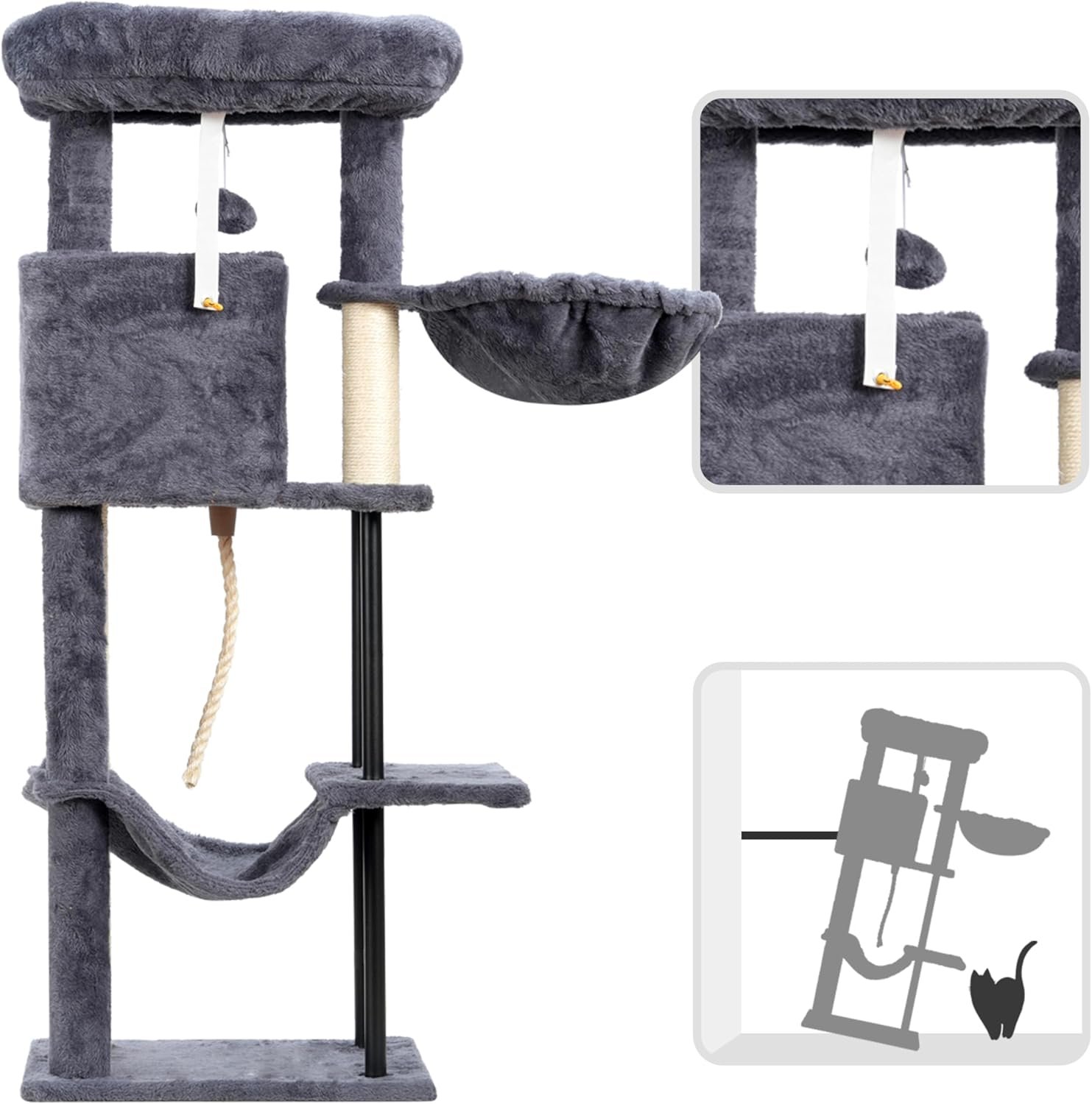Yaheetech 62.5inches Cat Tree Cat Tower Cat Condo with Platform & Hammock, Scratching Posts for Kittens Pet Play House with Plush Perch for Indoor Activity Relaxing, Dark Gray