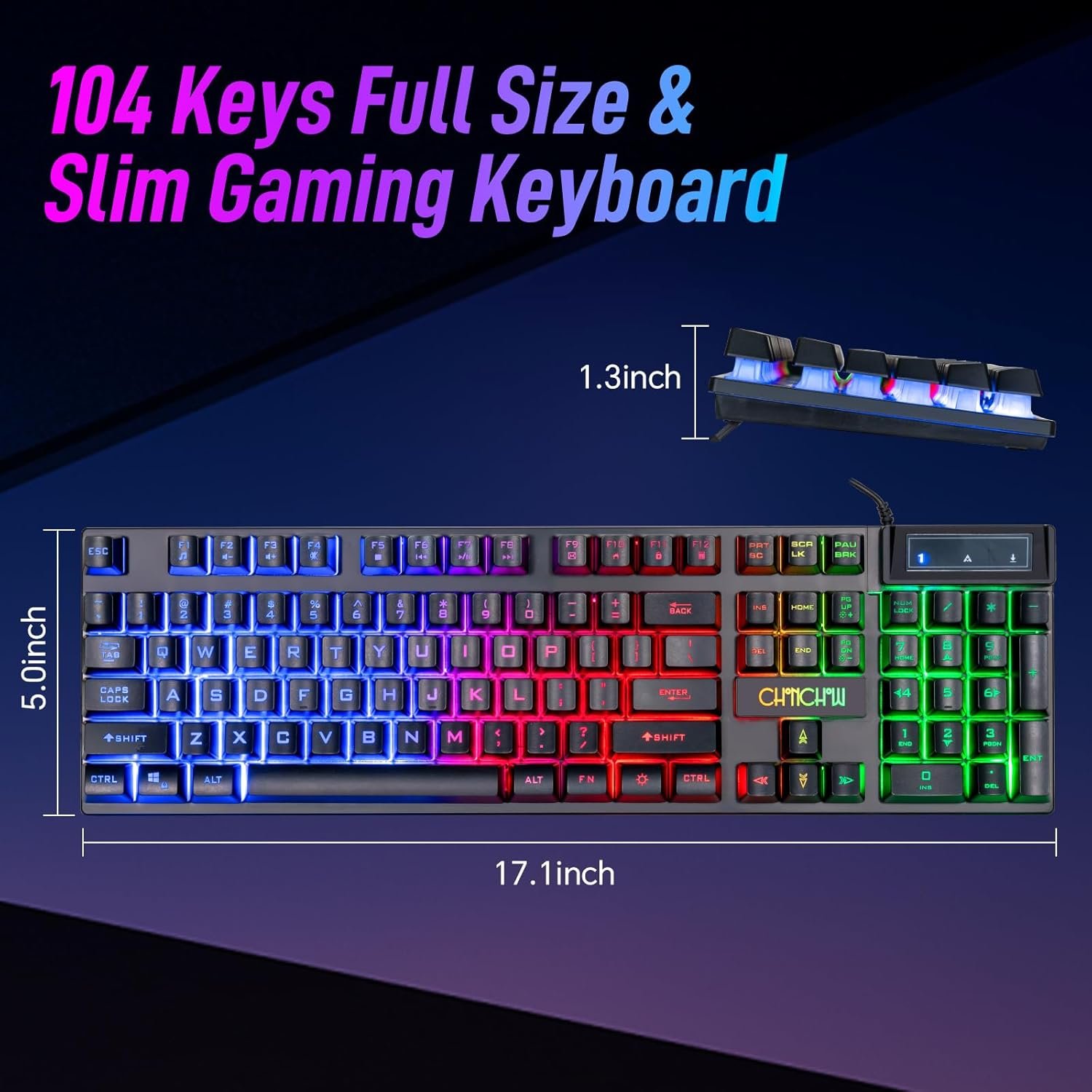 CHONCHOW Wired Gaming Keyboard, 104 Keys Full Size, with Anti-Ghosting and Multimedia Keys, LED Backlit Light Up Keyboard for PC Mac Laptop Desktop, Gaming or Office