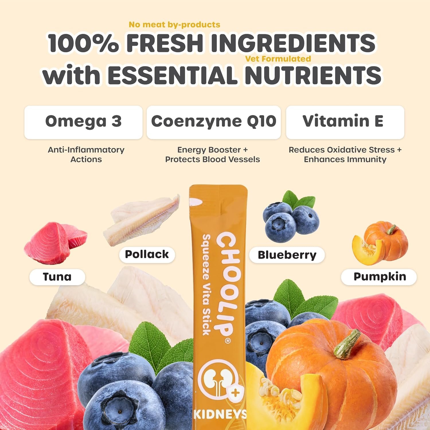 Choolip Squeeze Vita Stick Lickable Cat and Dog Treats, 7-Count Kidney Support, Tuna and Pollack with Cranberry, CoQ10 and Omega-3, Grain-Free, Vet-Formulated