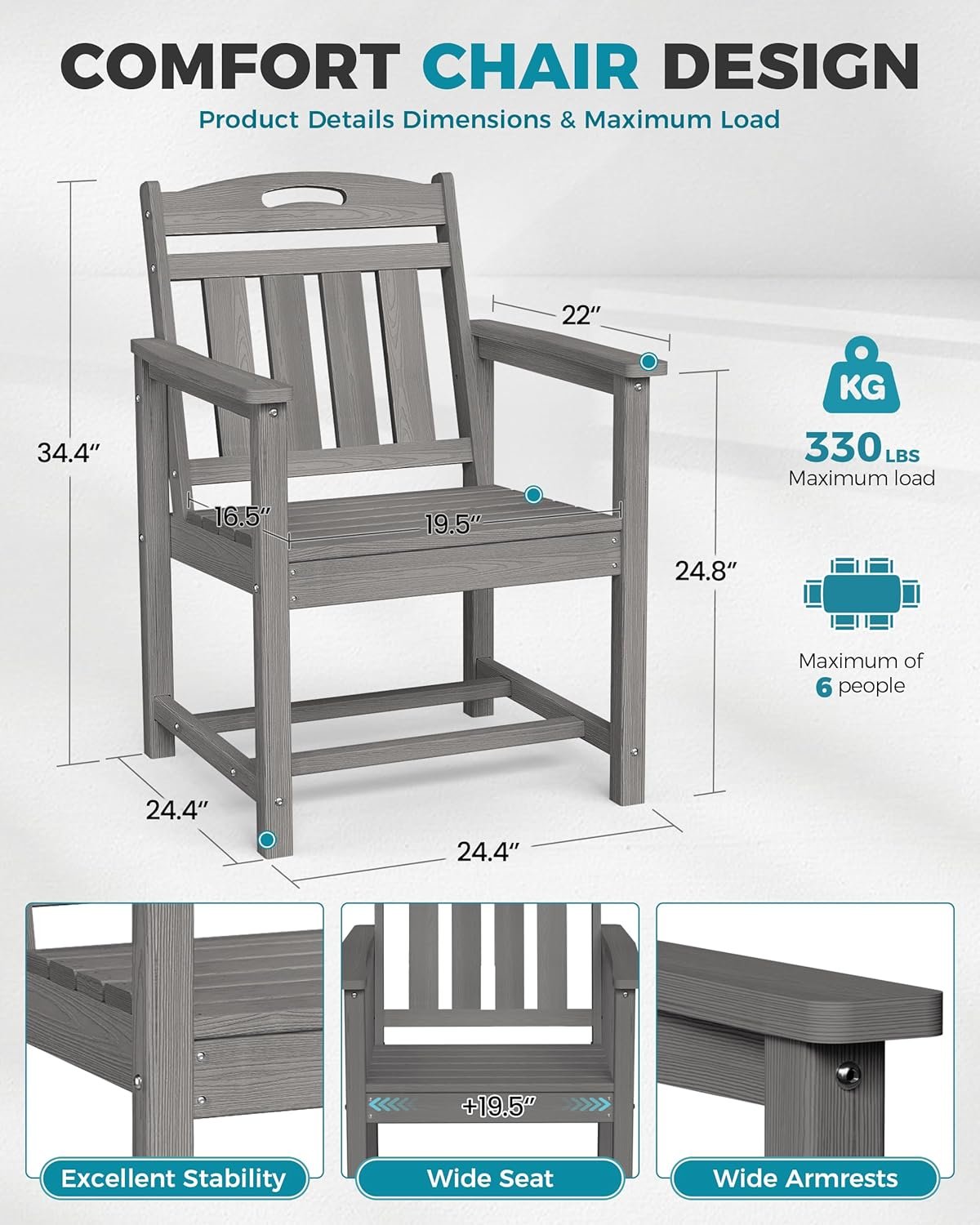 Ciokea HDPE Outdoor Dining Set 7-Piece Patio Table and Chairs with Umbrella Hole, All-Weather Patio Dining Set for 6, Durable Patio Furniture Set for Backyard, Garden, Lawn & Poolside, Grey