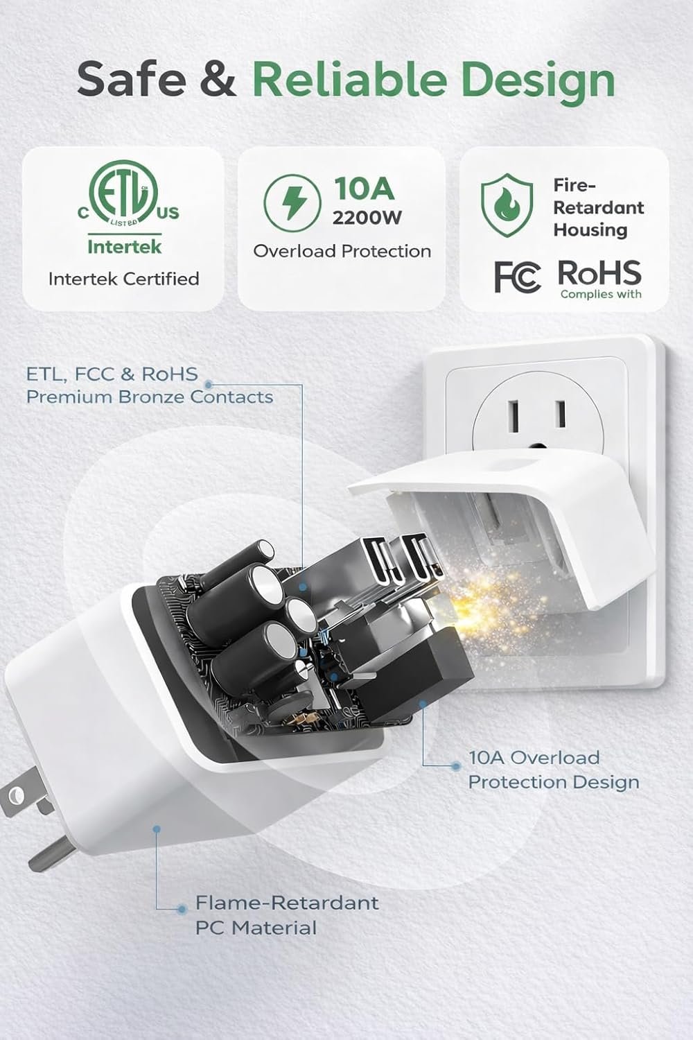 Compact Smart Plug, Works with Alexa & Google Assistant, Smart Life App & Voice Control, Energy Monitoring, Timer Scheduling, No Hub Required, App Remote Control, 2.4 GHz WiFi Outlet, 2-Pack