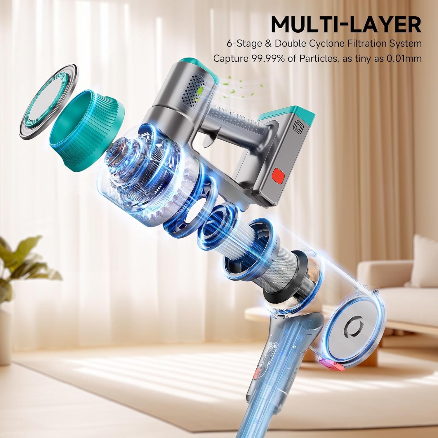 Cordless Vacuum Cleaner, Stick Vacuum with Powerful Suction, 45Mins Runtime Vacuum Cleaners for Home, Anti-tangle and 1.5L Dust Cup, 6 in 1 Lightweight Vacuum for Hardwood Floor Carpet Pet Hair