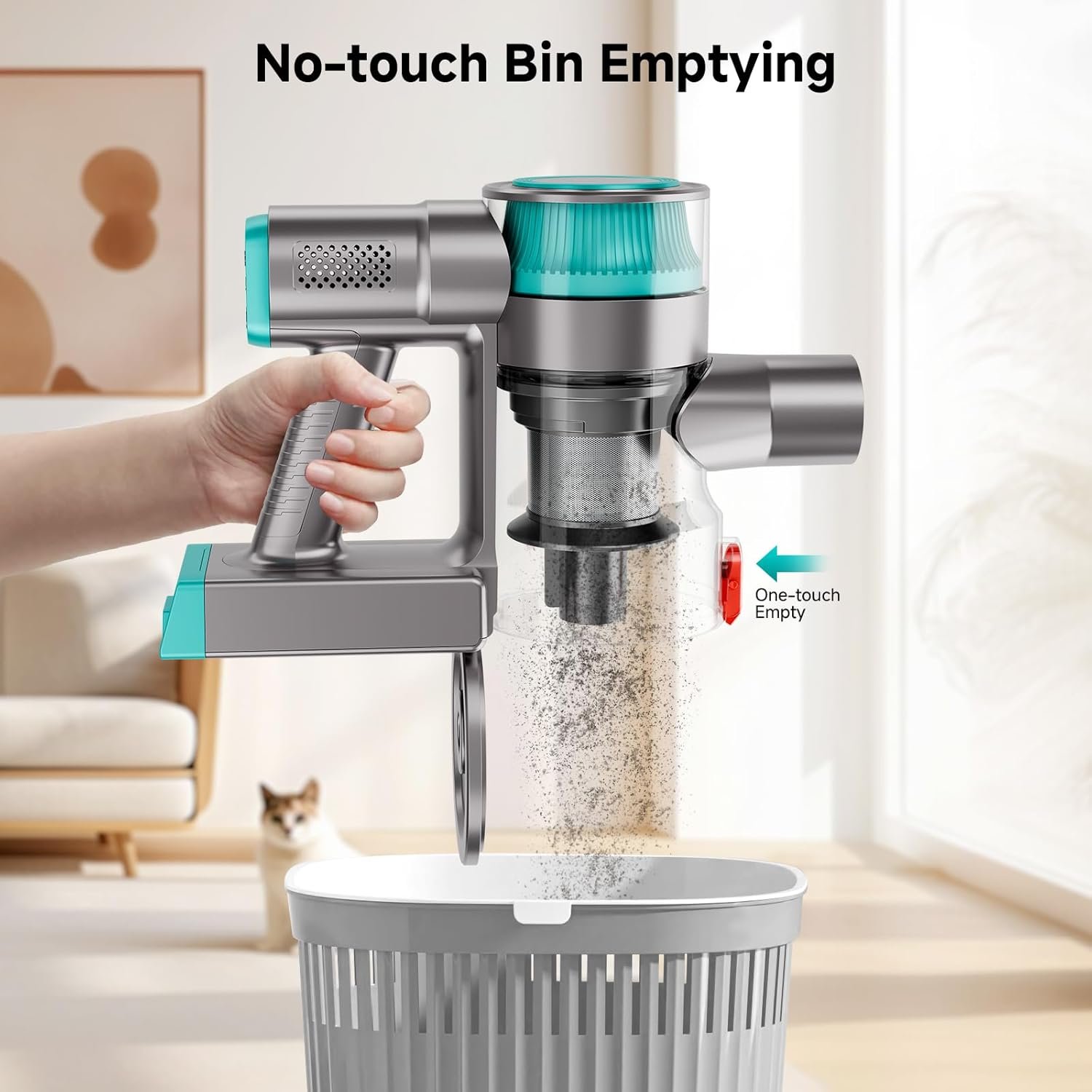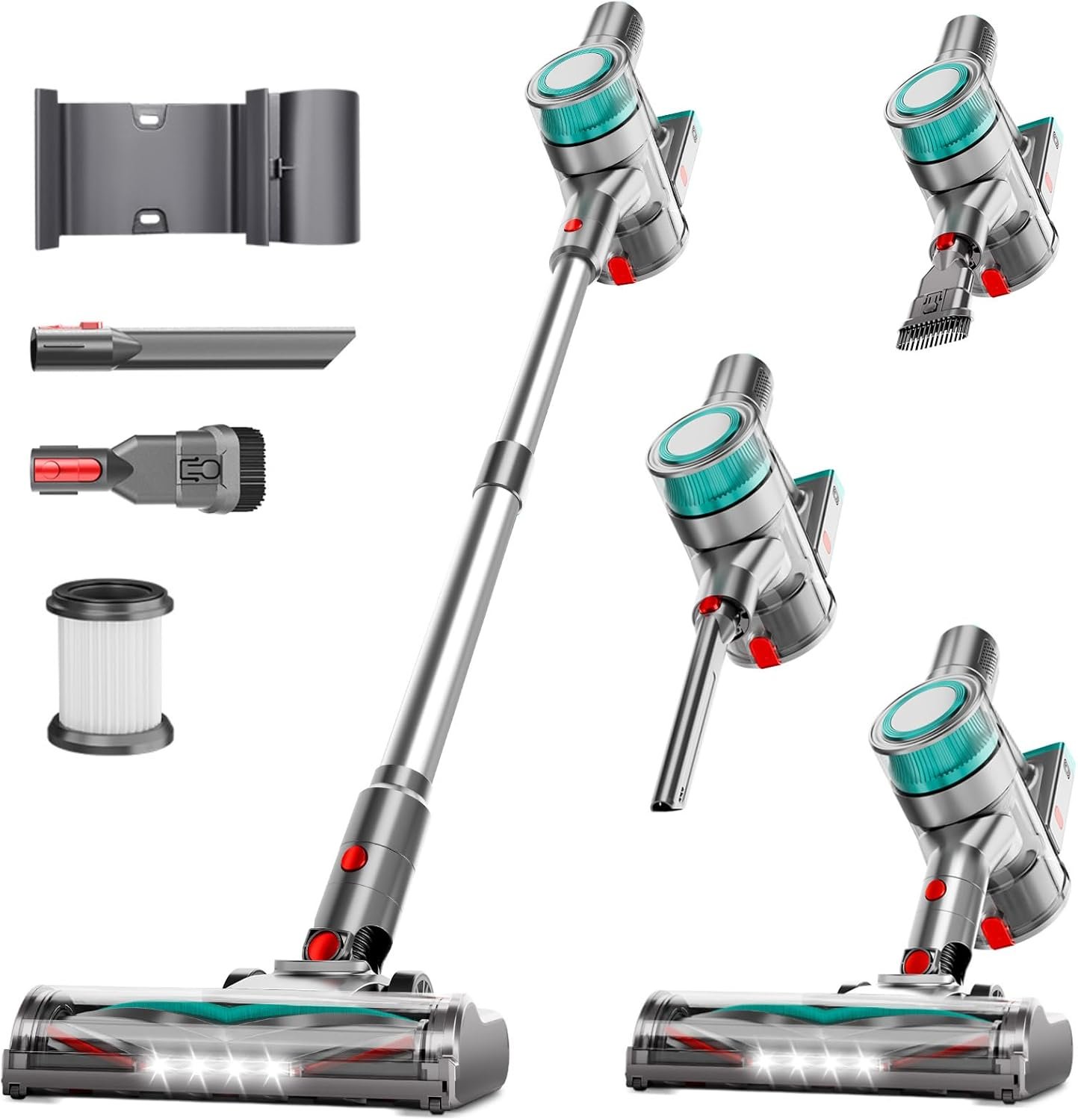 Cordless Vacuum Cleaner, Powerful Stick Vacuum Cleaner for Home with Rechargeable Battery, 6-in-1 Lightweight Handheld Vacuum, 45 Mins Runtime for Hardfloor & Carpets Pet Hair (Green)