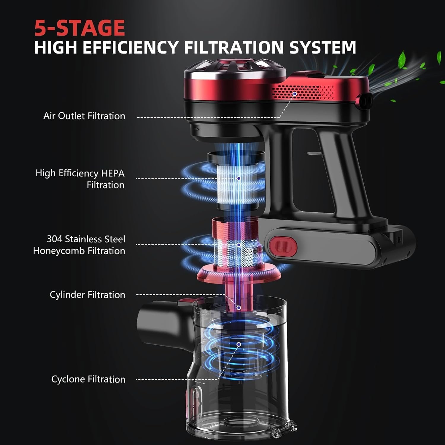 Cordless Vacuum Cleaner,Vacuum Cleaners for Home with Super Suction,Lightweight Stick Vacuum with 35 Mins Runtime,Rechargeable Cordless Vacuum for Carpet, Tile, Pet Hair, Hardwood Floors(Red)