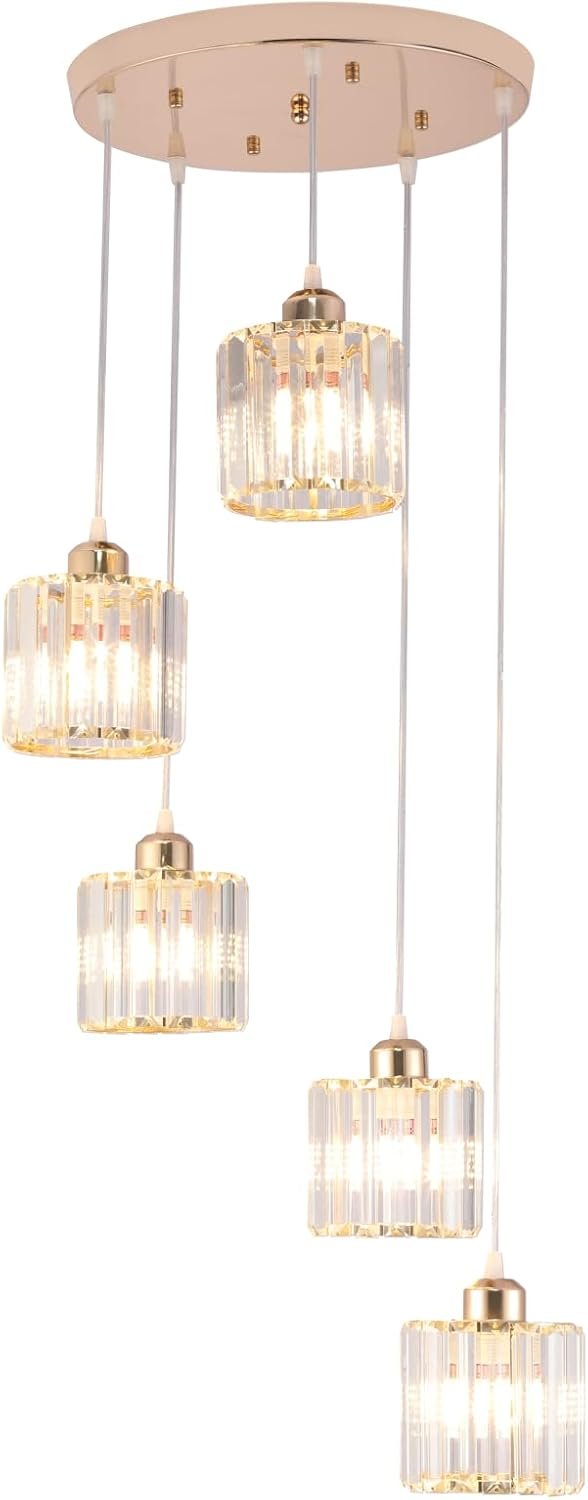 Crystal Pendant Lights Chandeliers for High Ceilings Modern Crystal Chandeliers Hanging Light Fixture Raindrop Drop Lamp for Dining Room Foyer Living Room Entryway Gold 5 Lights