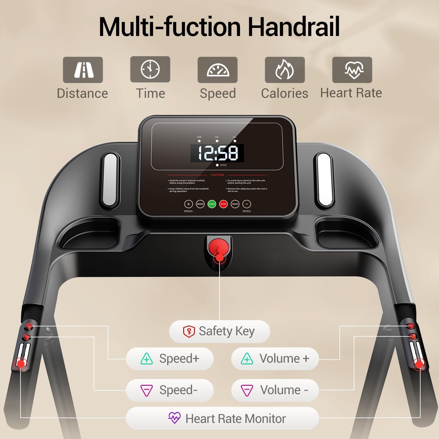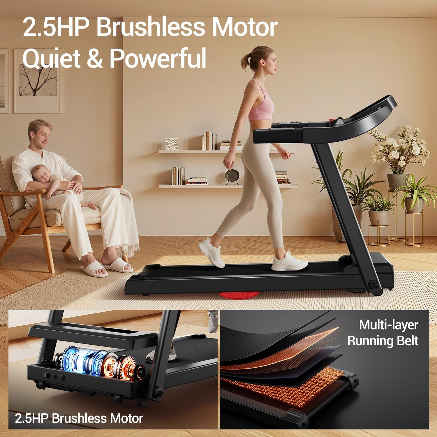 Treadmill with 3-Level Incline for Home and 3.0 HP Quiet Brushless, 8.7 MPH, 300 lbs Capacity