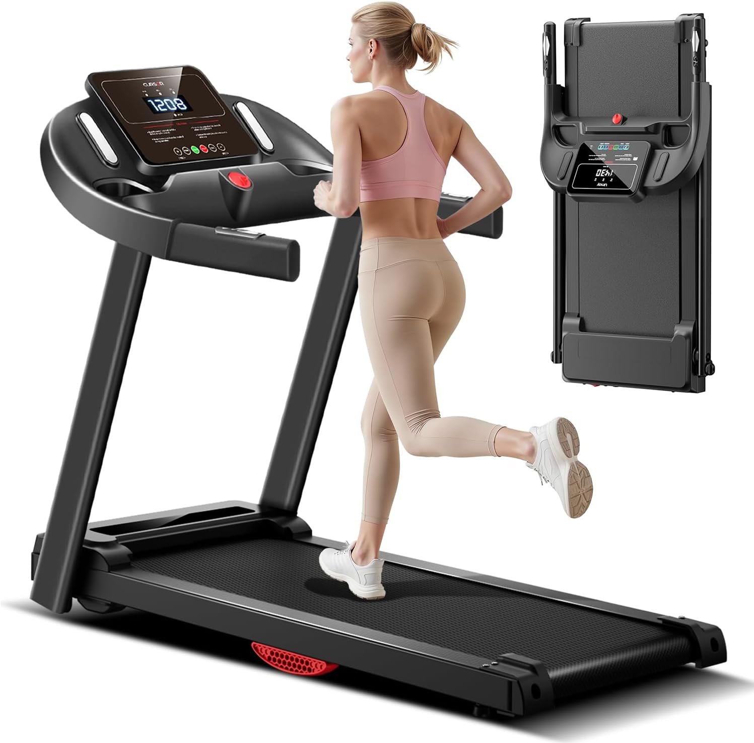 CURSOR FITNESS Home Folding Treadmill with Pulse Sensor, 2.5 HP Quiet Brushless, 7.5 MPH, 265 LBS Capacity