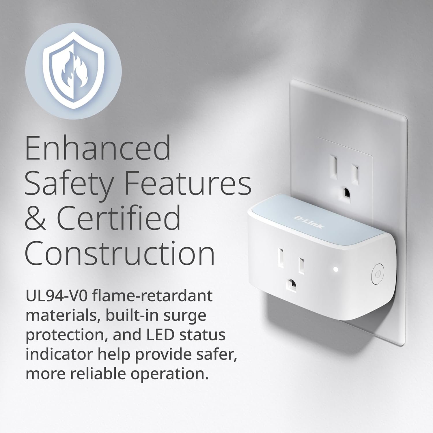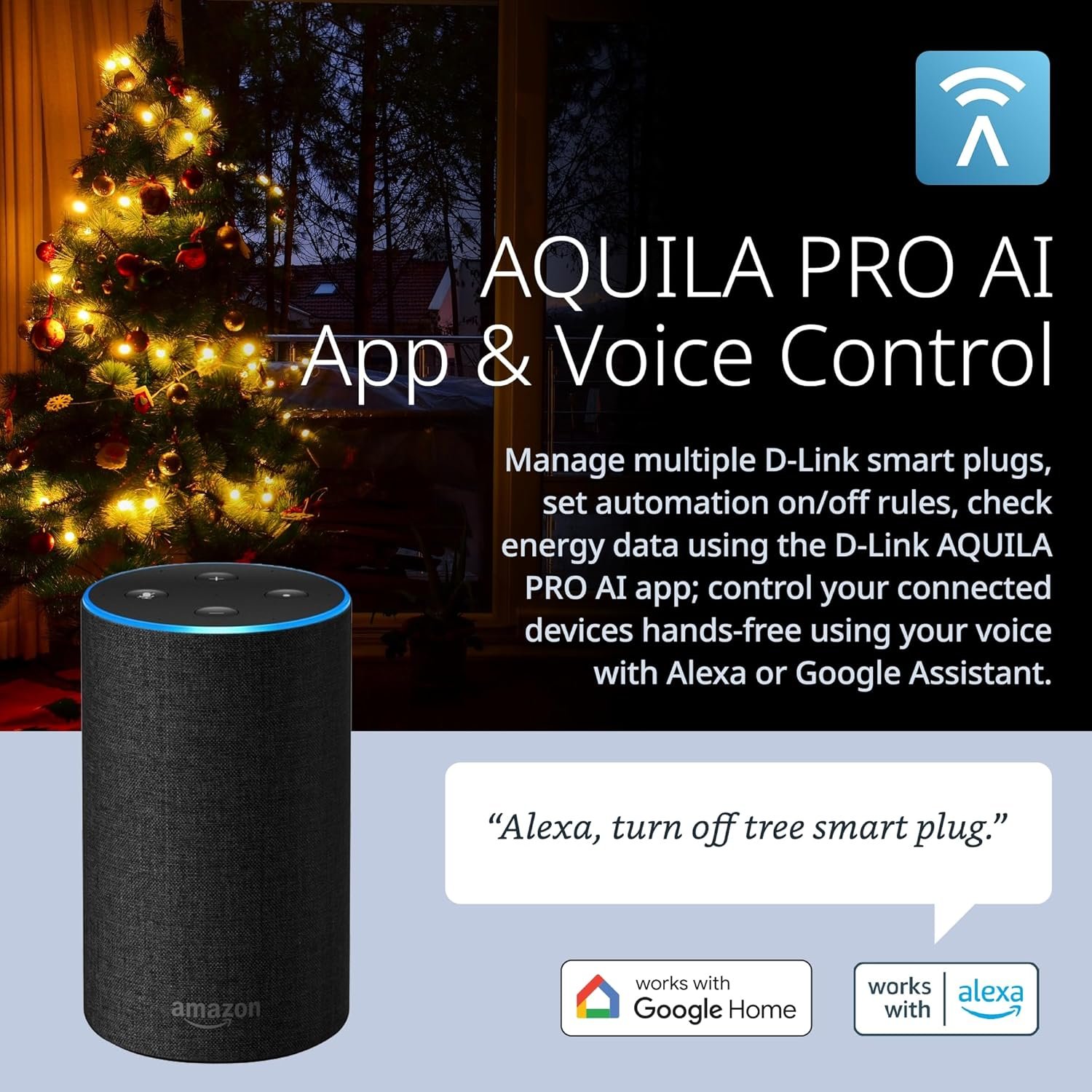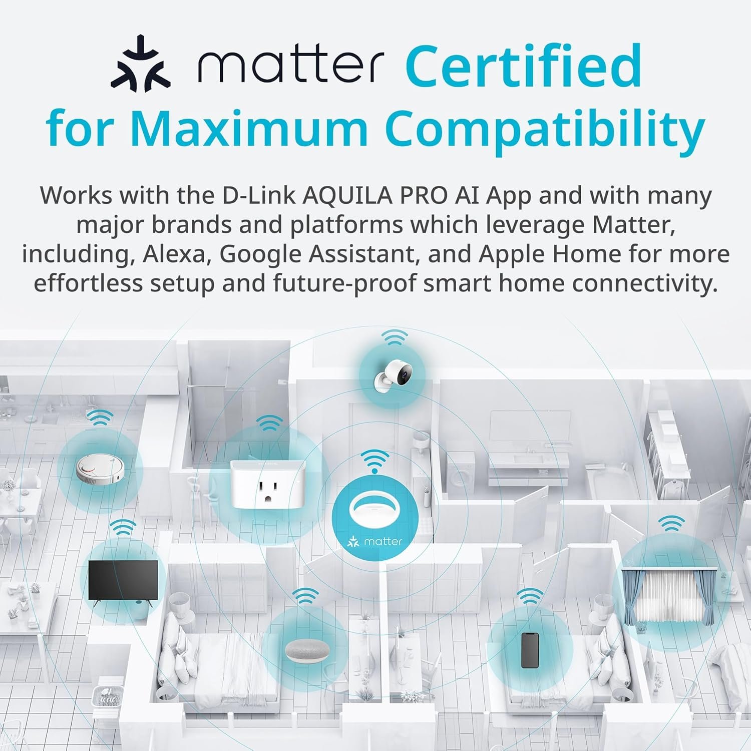 D-Link PM-01M Wi-Fi Smart Plug, Aquila PRO AI & Matter Supported, Compact Design, 15A/1800W Max, Energy Monitoring, Easy Bluetooth Setup, Works with Alexa & Google Home, Flame-Retardant, UL Certified