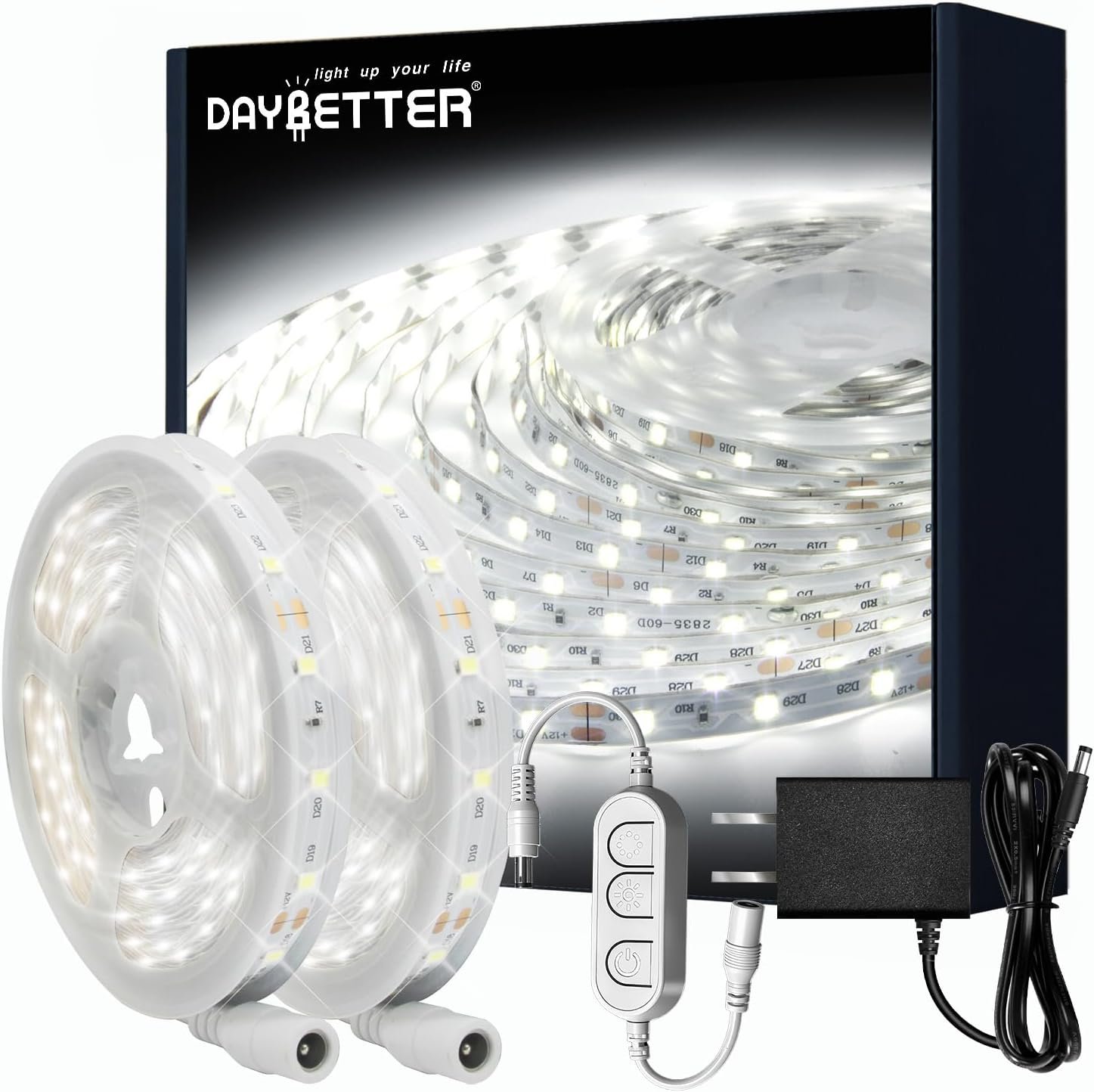 DAYBETTER White LED Strip Lights, 50 ft Dimmable 6500K Bright White Strip Lighting, 900 LEDs Tape LED Lights for Bedroom, Mirror, Kitchen, Home Decoration(2 Rolls of 25 ft)